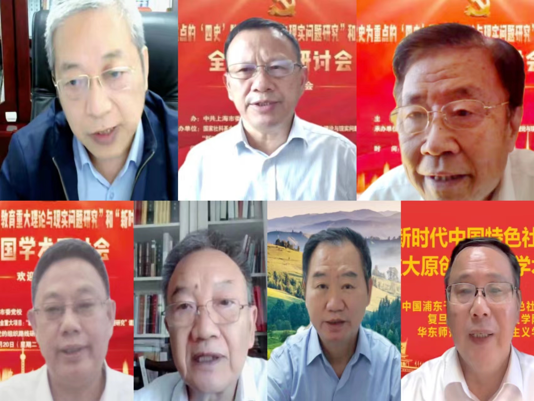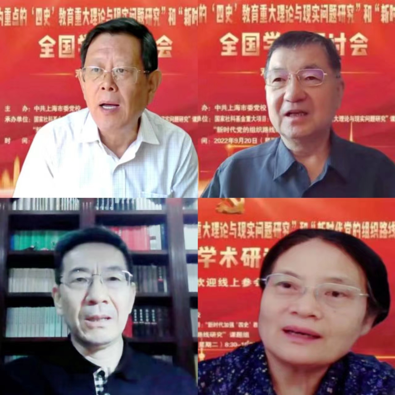 研讨会上,中国社科院原副院长、中国政治学会会长李慎明教授和中共中央党史研究室原副主任冯俊教授分别作《“两个确立”是新时代党之大者》《学好“四史”,坚定历史自信》大会主旨演讲。北京师范大学中共党史党建研究院院长王炳林教授、中国科学院大学马克思主义学院王庭大教授、中共中央党史和文献研究院第四研究部张神根主任、中共中央党校中共党史教研部罗平汉主任、中国人民大学中共党史党建研究院院长杨凤城教授、中国社科院当代中国研究所副所长宋月红教授、天津大学马克思主义学院院长颜晓峰教授、武汉大学政治与公共管理学院院长丁俊萍教授和华南师范大学马克思主义学院院长陈金龙教授等分别做了题为《把握“四史”教育的核心和重点》《深刻理解“两个确立”,坚决做到“两个维护”》《习近平总书记关于党的历史系列重要论述特点分析》《中国共产党坚持统一战线的历史经验》《强化新时代站位,建构民族复兴新叙事》《论确立正确党史观》《坚持中国共产党人的历史自信》《“四史”融入高校思政课教学的若干问题》和《新时代坚定历史自信的路径选择》的主题演讲。
