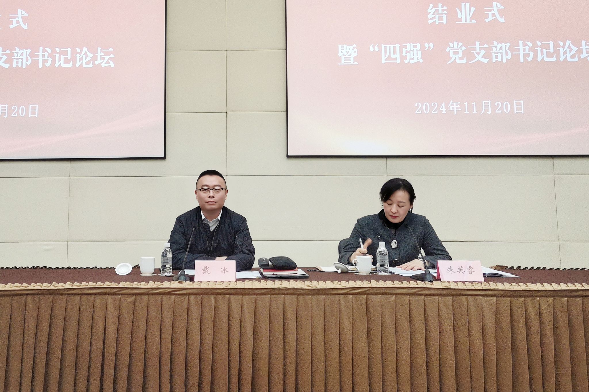 结业式上还举行了“四强”党支部书记论坛。办公室党支部书记张前做了题为“将策划与组织实施分解,为供给侧点位赋能”、马克思主义学院党支部书记王公龙做了题为“善用系统思维,建设‘四强’支部”的主题发言,科社教研部党支部书记陈方刘就“如何营造团结奋进的支部文化”、教师进修学院党支部书记唐月娥就“如何以支委班子建设为抓手,推进党建和高效师资培训深度融合”分别做了分享交流。
