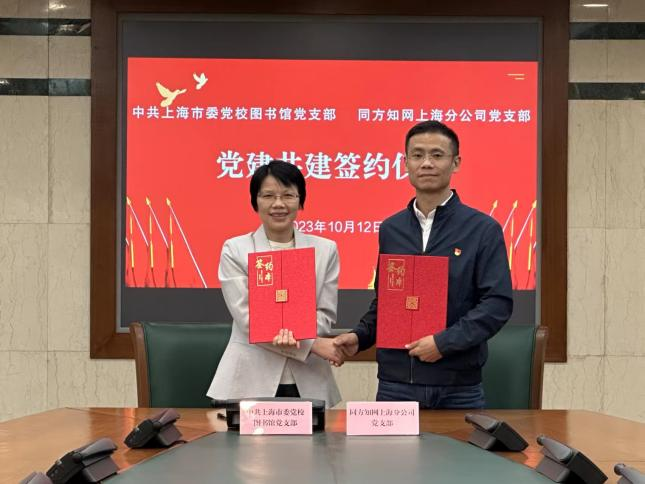 本网讯 为进一步加强党支部共建,发挥党建引领作用,增进党组织共同提高,实现资源共建共享,10月12日上午,AG百家乐官网图书馆党支部与同方知网上海分公司党支部举行党建共建协议续签仪式,双方党支部书记、委员及党员代表参加仪式。会上,双方就深入开展学习贯彻习近平新时代中国特色社会主义思想主题教育,开展热切研讨交流,并约定11月开展党建共建活动。