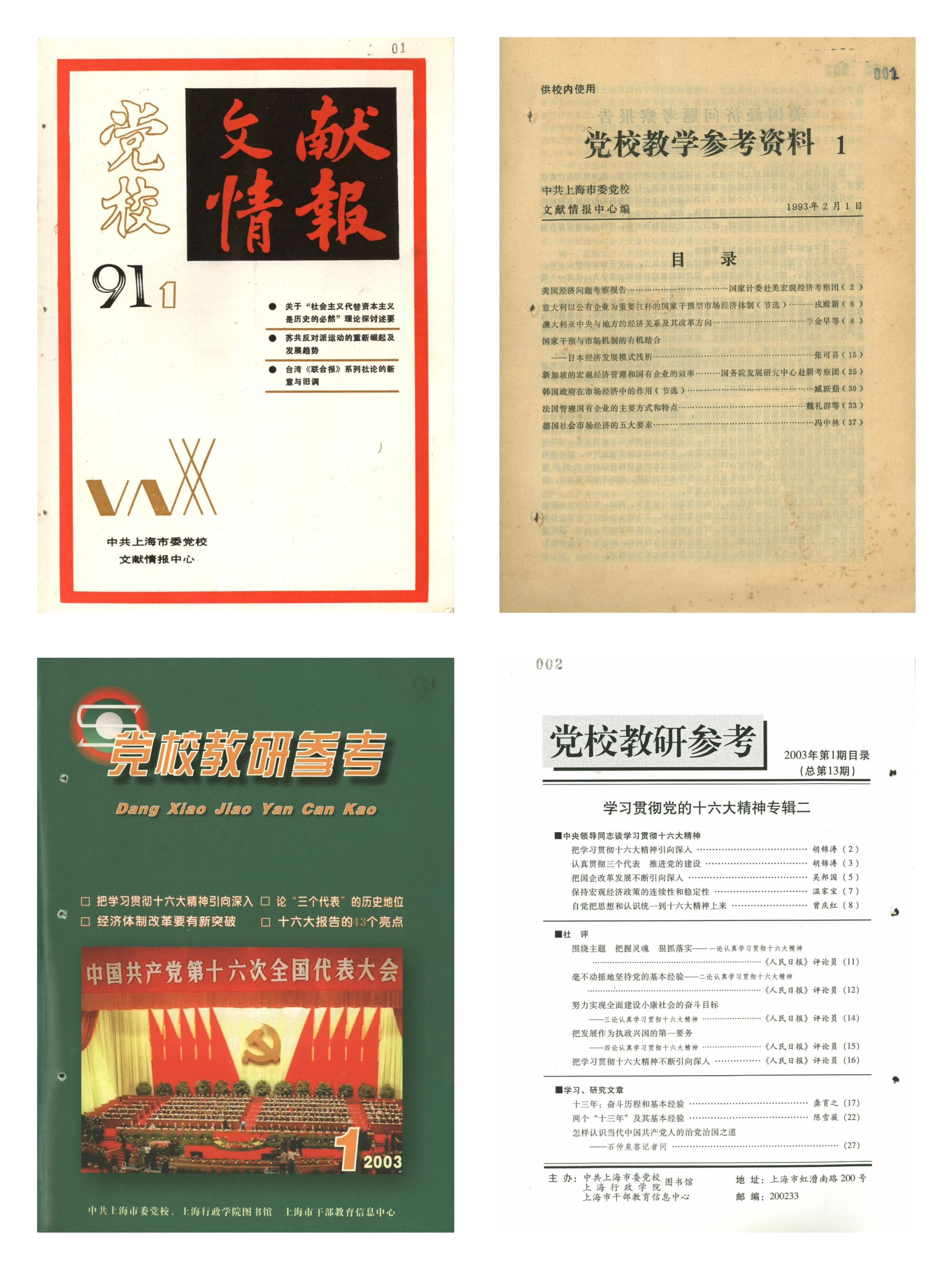 作为具有研究性质的专业图书馆,党校图书馆(时称图书资料室)早在1949年建校初期,就已开展面向学员与教研人员的参考资料整理服务。1960年起,党校图书资料服务由资料整理发展到资料编辑,编写《论技术革命》《党的团结与统一》《经典作家论家庭、婚姻和妇女解放》《经典作家论生产力与生产关系》等专题资料;1978年,为配合复校后的第1期轮训班学员学习,党校图书馆选编和印发了补充教材9种、学习参考材料4种等。同年,为配合真理标准问题的大讨论,党校图书馆编辑《马克思主义原著导读》《拨乱反正、恢复党的思想路线》等资料;1980-1982年,围绕社会主义基本特征和经济建设这个教学和科研的中心课题,党校图书馆编辑了《社会主义生产目的的讨论情况简介》《关于社会主义社会基本特征的论点介绍》等资料。
