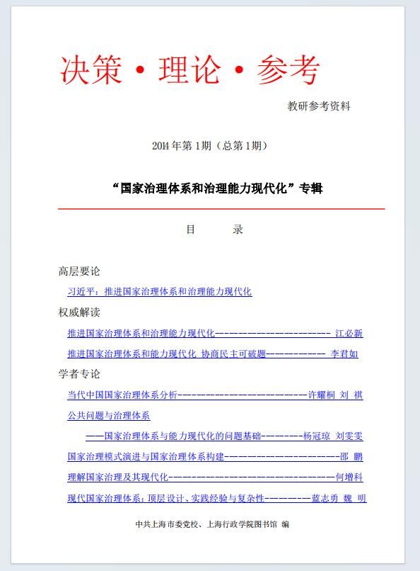 自2007年底开始,党校图书馆组建了一支兼职学科馆员队伍,分别对应当时的7个教研部,初步建立了学科馆员联系教研部的基本通道和机制。2014年,党校图书馆创办《决策·理论·参考》电子版信息情报类刊物,每年共8期,由信息咨询部负责,每期根据教研咨实际或时事热点确定专题,主要收录相关论文、进展报告、调研成果,兼顾综述、述评、书目、文摘等多种文献形式,立足现实,跟踪研究动向。经过几年的实践,党校图书馆逐步推出如下具体的学科服务内容,即学科联系、意见征询、资源推介(信息检索课程)、参考咨询、重大课题、决策咨询和个性化学术服务。