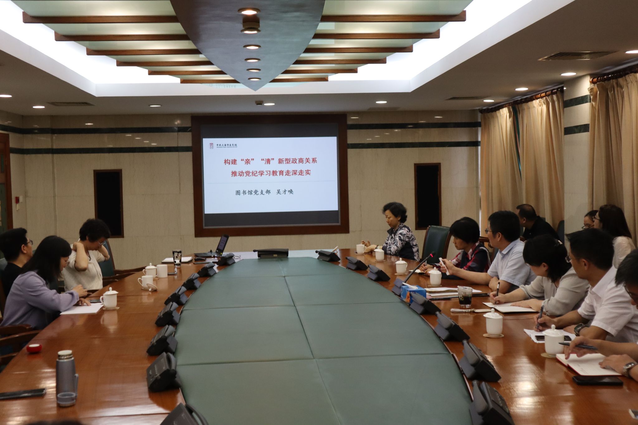 本网讯 6月27日上午,为贯彻AG百家乐机关党委关于支部书记讲纪律党课注重实效性、针对性、精准性等要求,图书馆党支部全体党员在深入学习《中国共产党纪律处分条例》和《习近平关于全面加强党的纪律建设论述摘编》的基础上,支部书记给全体党员上了一堂题为“构建“‘亲’‘清’新型政商关系 推动党纪学习教育走深走实”的专题党课。