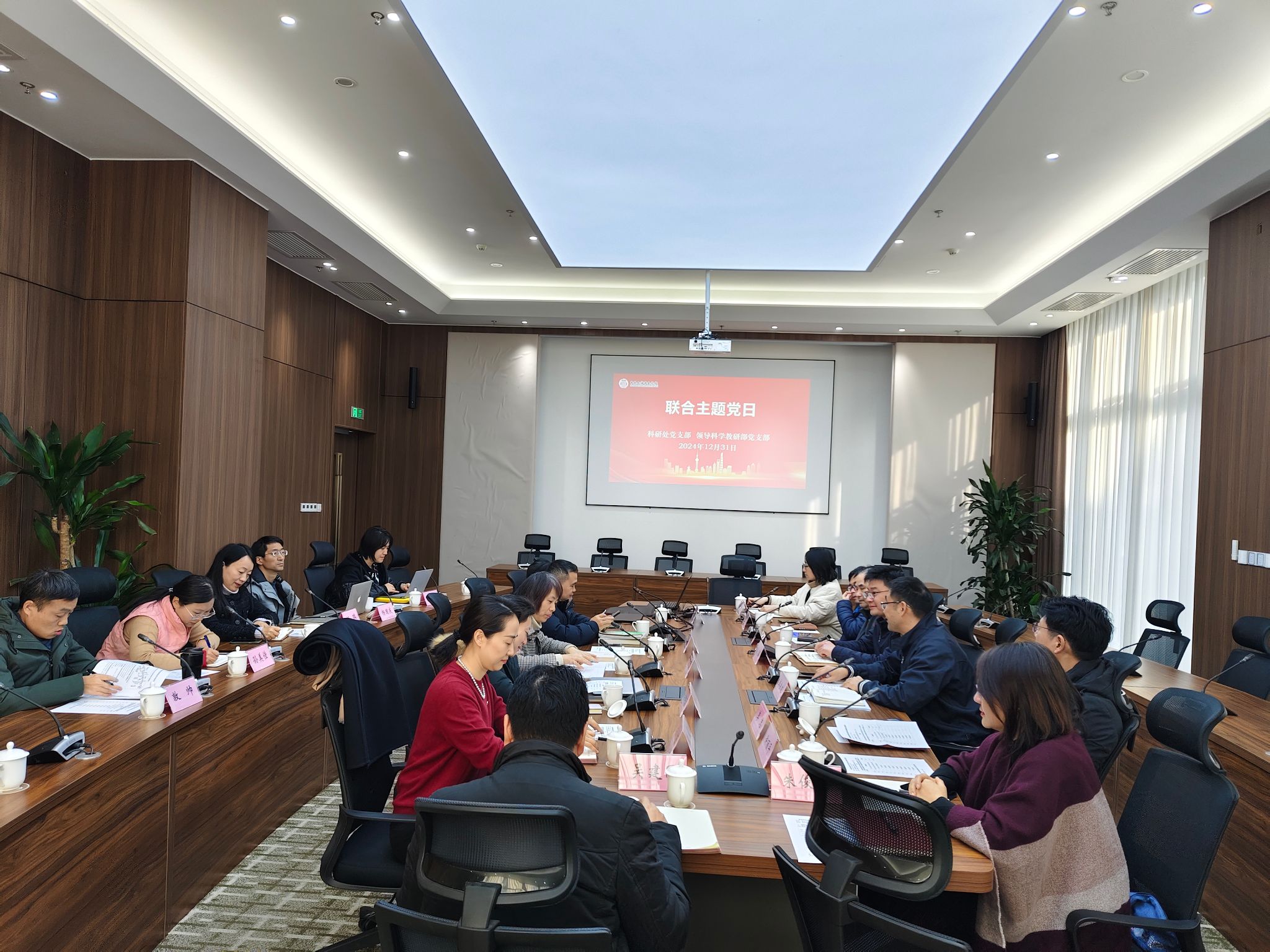 12月31日上午,科研处党支部和领导科学教研部党支部在海复楼101会议室开展联合主题党日活动。本次主题党日活动旨在进一步深入学习贯彻党的二十届三中全会精神,加强各部门之间的业务联系,增进沟通。活动由领导科学教研部党支部书记李宗建主持。