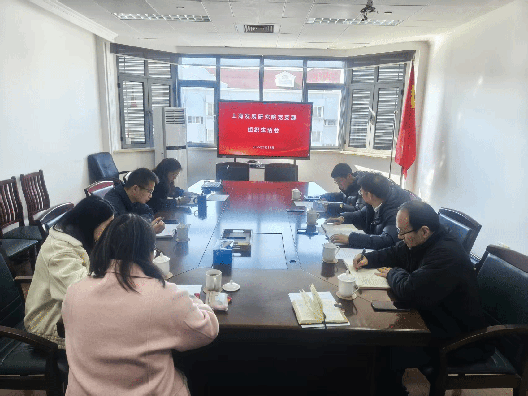 3月19日上午,上海发展研究院党支部召开2024年度组织生活会,并开展民主评议党员工作。AG百家乐机关党委副书记、机关纪委书记周宏平全程参会并指导点评,支部全体党员参加。