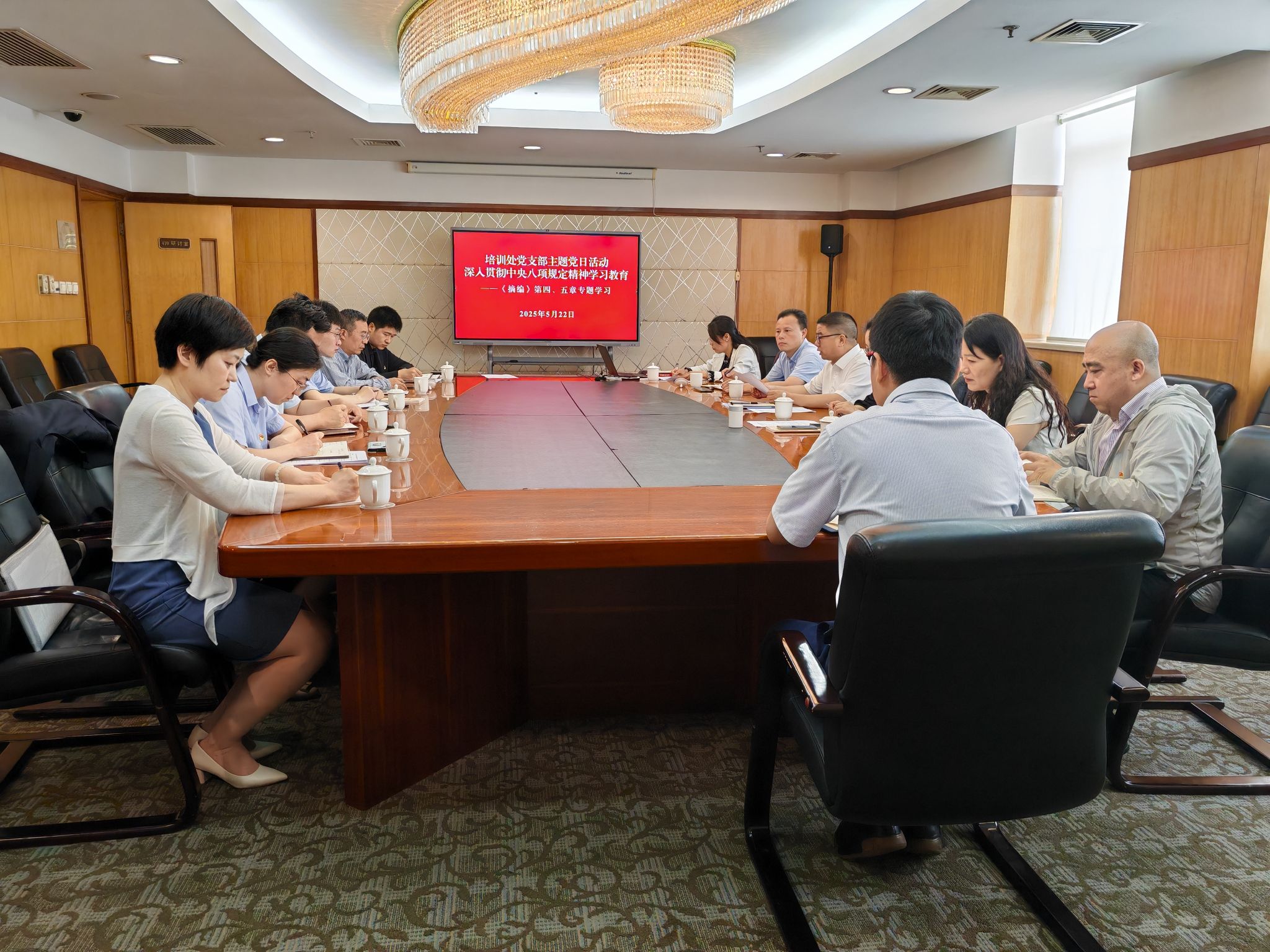 为深入学习领会习近平总书记关于加强党的作风建设的重要论述和中央八项规定及其实施细则精神,扎实推进作风建设常态化长效化,5月22日上午,培训处党支部开展5月主题党日活动,围绕《习近平关于加强党的作风建设论述摘编》第四章和第五章组织专题学习。支部书记吴从环同志主持会议。