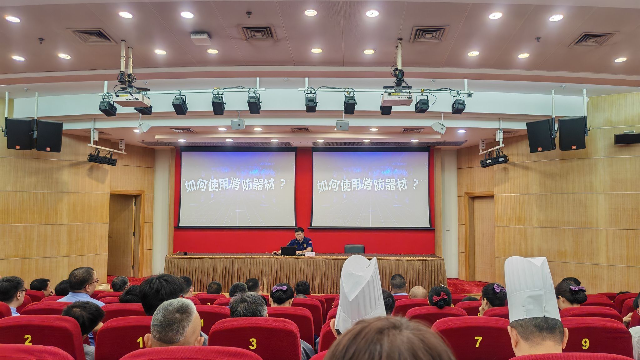 在海华南广场,吴泽现场演示了干粉灭火器、消防水带等消防器材的正确使用方法,教授大家如何快速正确冷静地扑灭初期火灾。海兴大厦餐厅、会务、厨房、安保、工程员工等进行了实操演练,确保关键岗位能够真正掌握消防器材使用技巧。