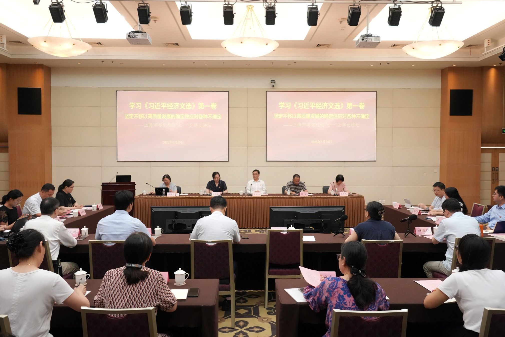 6月30日,市委党校举办“学习《习近平经济文选》第一卷 坚定不移以高质量发展的确定性应对各种不确定性”迎“七一”支部大讲坛。市委党校副校长王永杰出席并致辞。中央党校经济学教研部主任赵振华教授,教育部长江学者特聘教授、复旦大学特聘教授周文作主旨演讲。来自浙江省委党校、上海社会科学院、上海市党校系统、市属国资企业、市主流媒体等相关领域专家学者与党员代表参加联学交流。