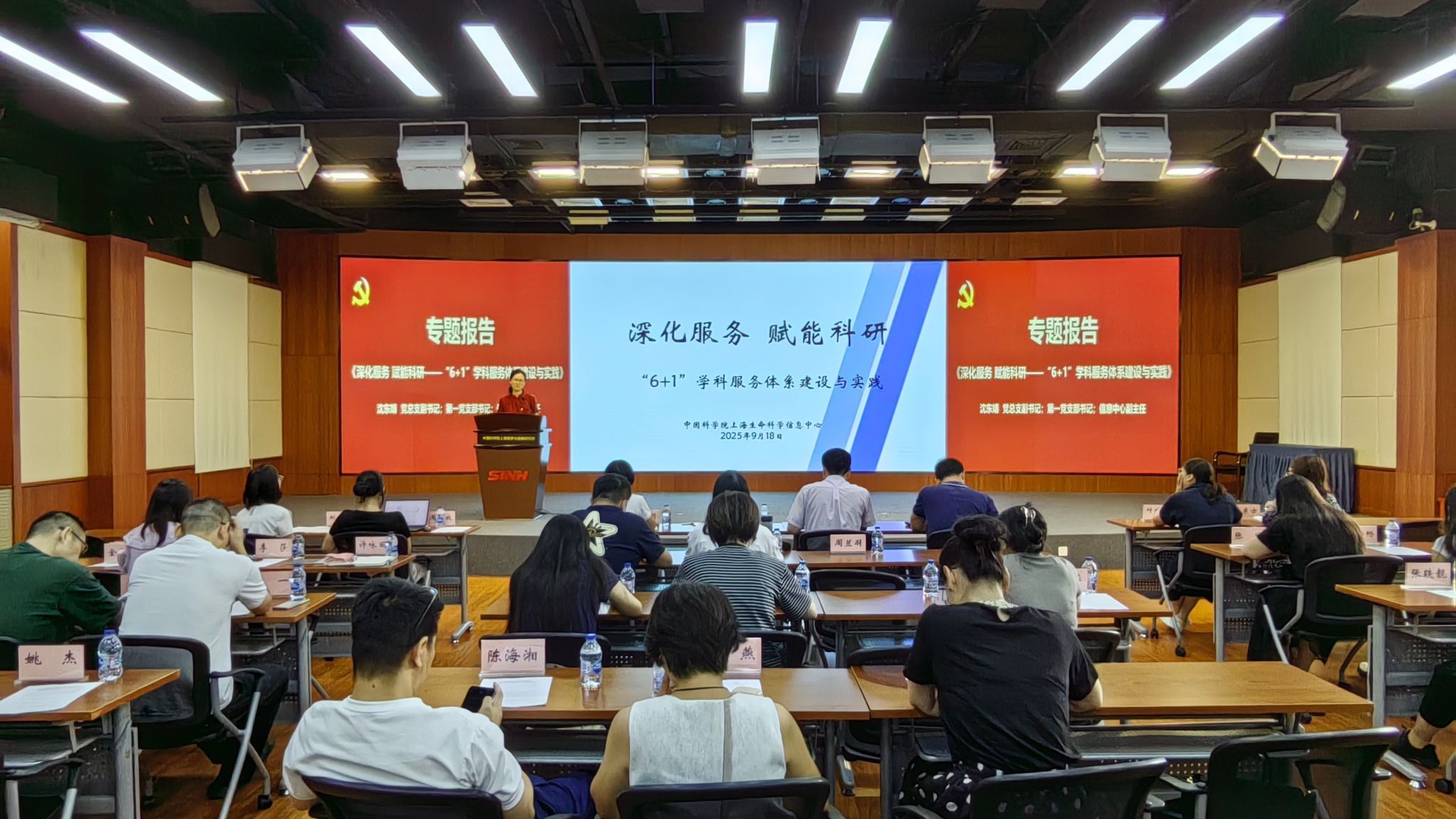 中国科学院上海营养与健康研究所信息中心第一党支部书记作题为“深化服务 赋能科研——‘6+1’学科服务体系建设与实践”的专题报告。报告从学科服务目标、学科服务对象、“6+1”学科服务方案和“6+1”学科服务工作等四个方面,系统介绍了信息中心在学科服务方面的创新机制与实践成果,分享了开展学科服务需要“点面”结合、学科服务需要培养用户、学科服务需要全能型馆员、学科服务需要“战略+学科”思维和学科服务需要AI的双向赋能等五个方面的经验。