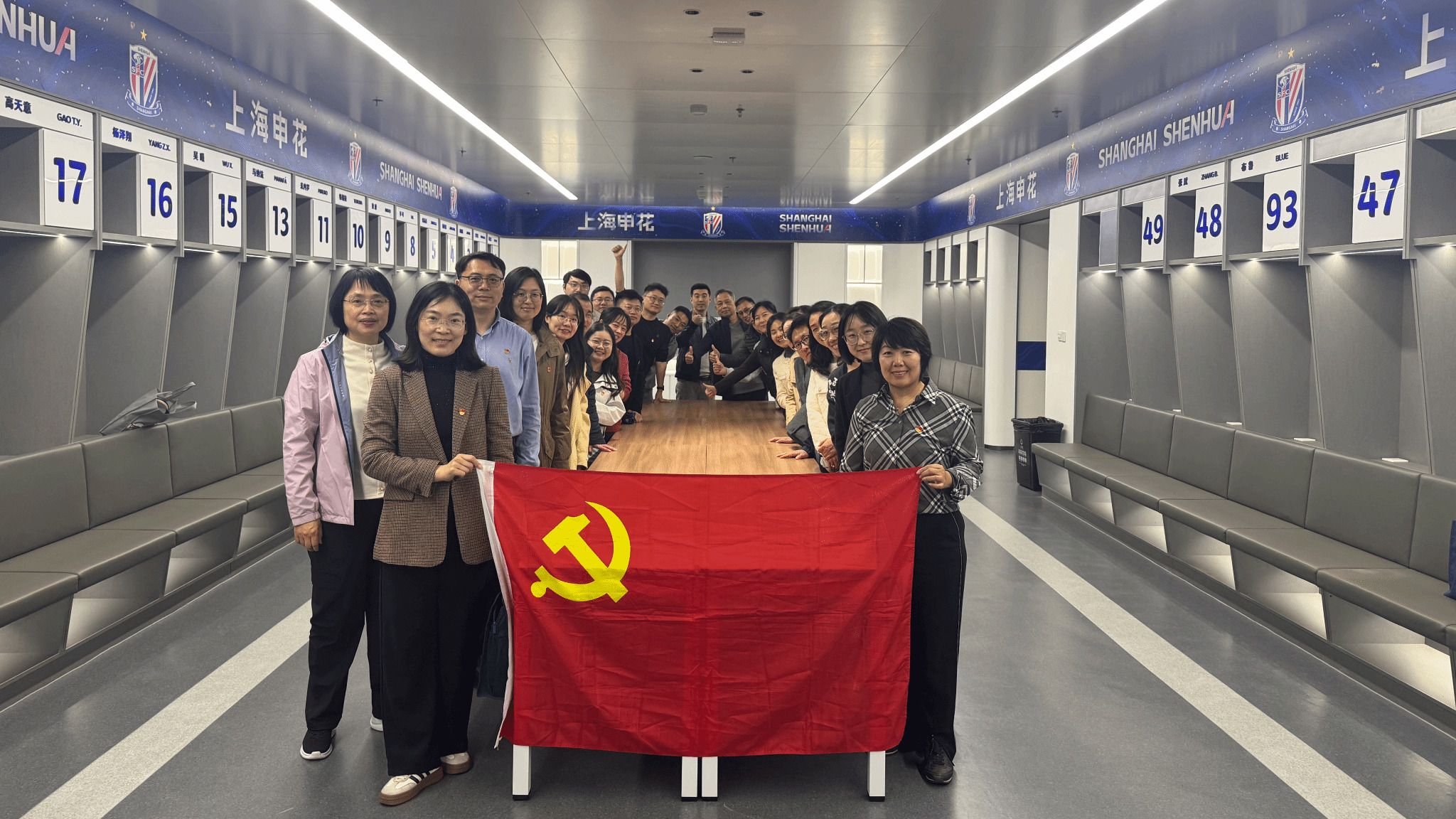 党员们先后参观了上海体育场内场、赛事新闻发布厅、申花文化体验中心等场所,实地观摩队服、队旗、奖牌、文献书籍及珍贵历史图片、报刊资料等展陈,系统了解俱乐部发展历程和成就。