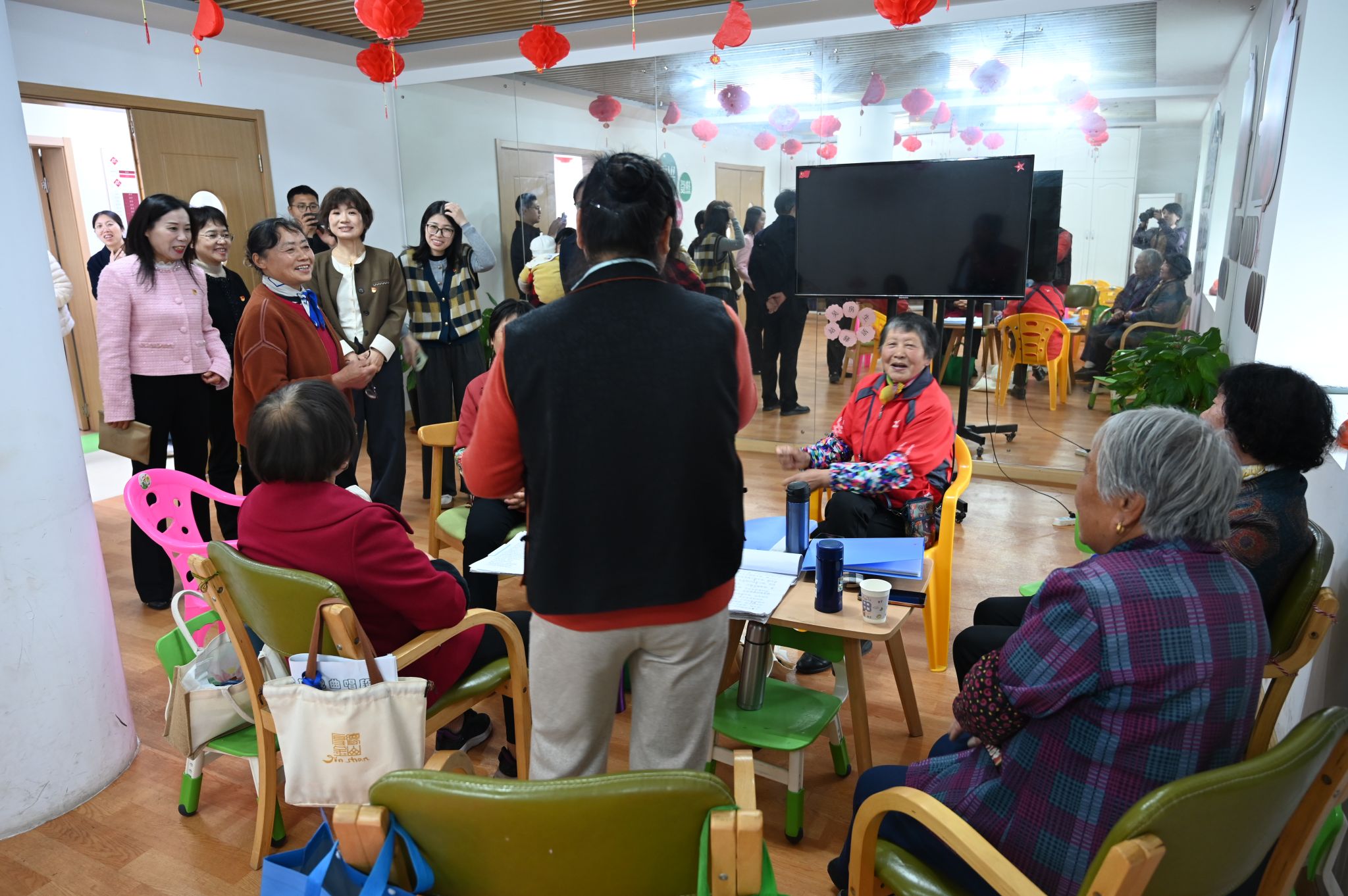 随后,党员们前往吴房村“青春里”颐养公寓开展志愿服务,对四位高龄老人家庭进行暖心慰问,送上关怀与祝福。党员教师与研究生联组结对,为公寓内的老人耐心讲解智能手机使用技巧,帮助老人跨越“数字鸿沟”,跟上数智时代。