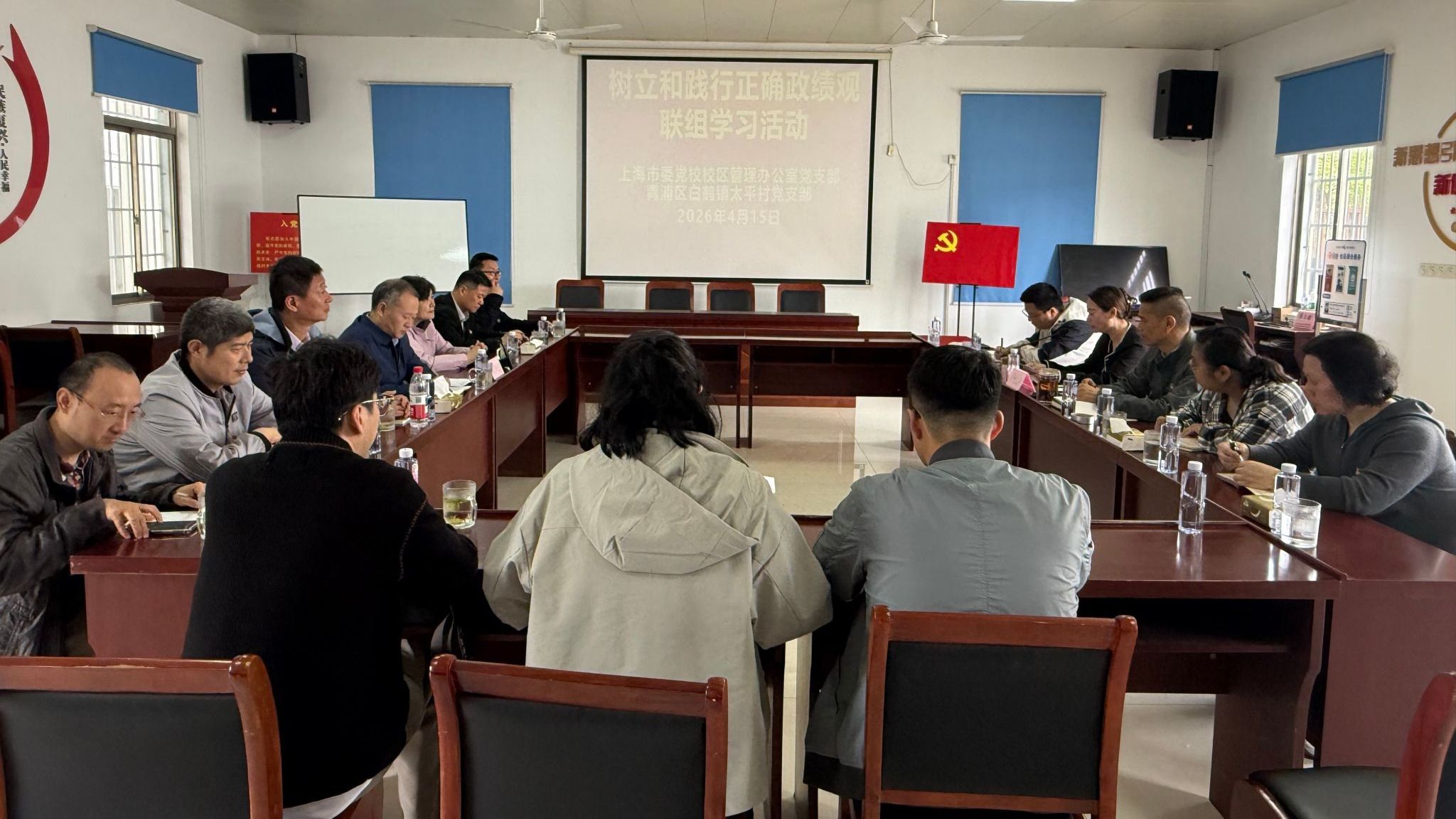 为引导党员干部牢固树立和自觉践行正确政绩观,进一步支持驻村干部扎根基层、履职尽责, 4月15日,校区管理办公室党支部赴青浦区白鹤镇太平村,与村党支部开展“树立和践行正确政绩观,了解关心驻村干部工作”联组联学活动。