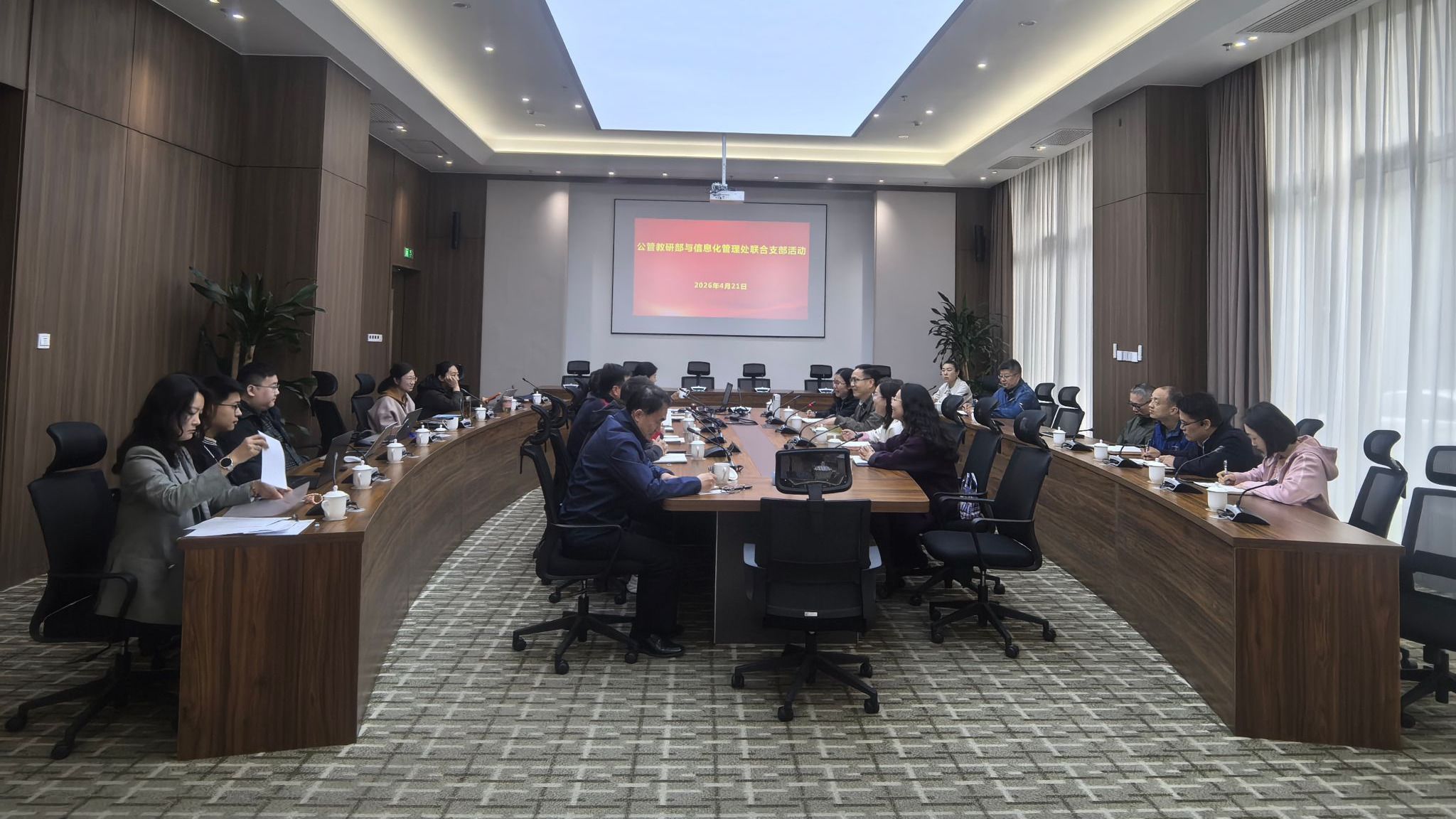 为深入学习习近平总书记关于树立和践行正确政绩观的重要论述,4月21日, 公共管理教研部党支部与信息化管理处党支部联合开展树立和践行正确政绩观学习。两个党支部全体党员参加。