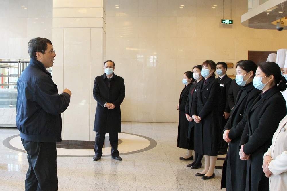徐建刚一行先后来到海兴大厦、后勤服务中心、南洋万邦、上勤高级楼宇、上海宗保等团队。 徐建刚代表校委向参与保障服务的全体人员表示感谢并指出,后勤服务队伍平时默默无闻,工作辛苦,不在前台,但同样是学校事业发展不可或缺的一支力量。此次会议疫情防控要求高、保障服务任务重,各团队坚决按照办会要求和校委决策部署,群策群力,团结一心,克服困难,连续奋战,保障了会议胜利召开,得到了政协委员和办会各方的高度肯定,充分展现了党校服务品牌,充分展现了党校后勤人的素质形象。