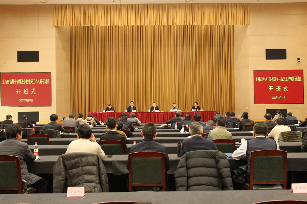本网讯 12月14日至16日,市委组织部、市委党校、市农业农村委、浙江大学继续教育学院联合举办的上海市领导干部推进乡村振兴工作专题研讨班在我校举办,副市长彭沉雷作开班动员。市委组织部副部长孙甘霖主持开班式。市农业农村委党组书记、主任张国坤,市委党校常务副校长徐建刚,浙江大学继续教育学院院长、党委副书记楼锡锦出席。