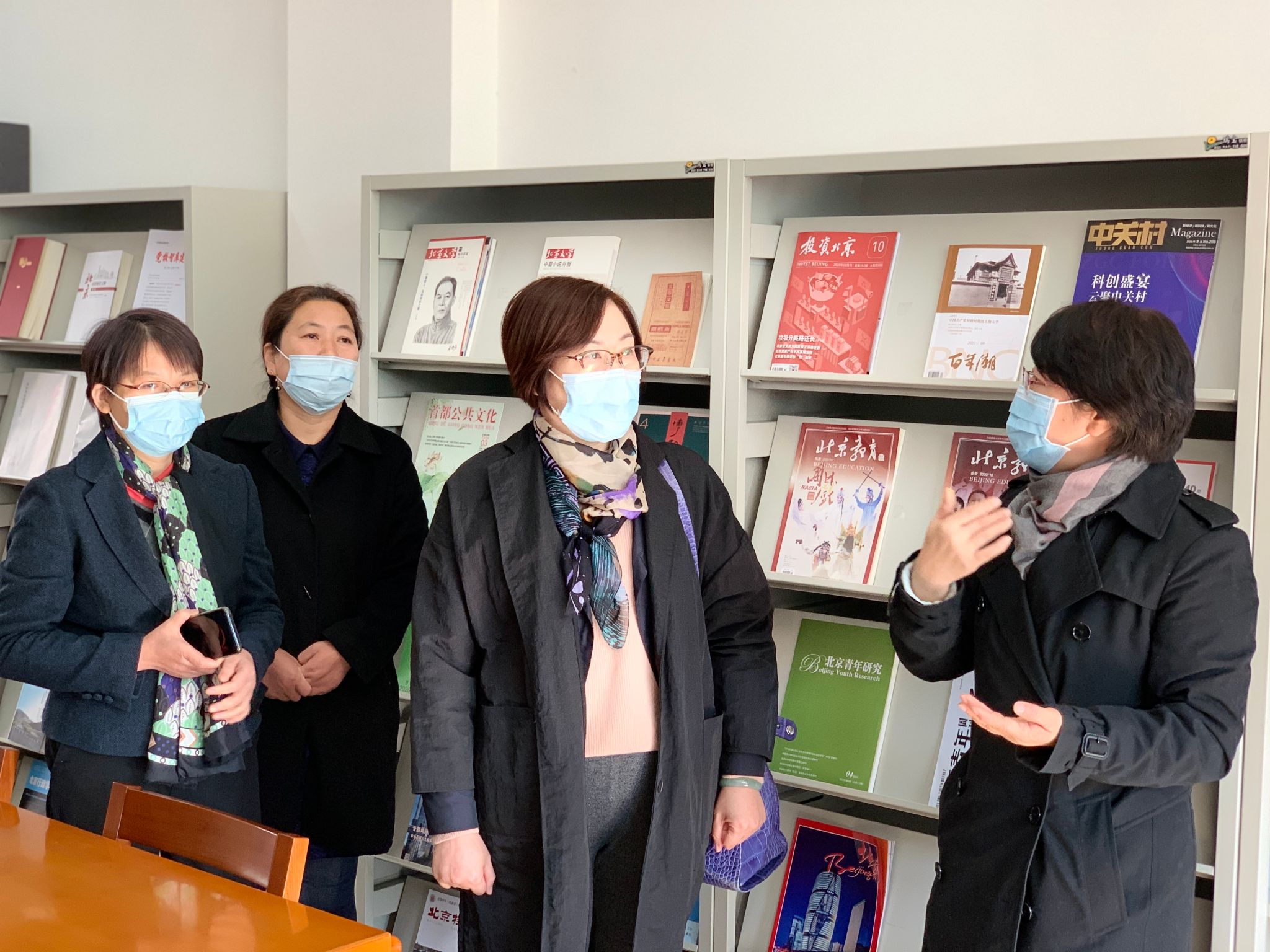 在中央党校(国家行政学院)图书和文化馆副馆长李爽的陪同下,调研组一行参观了空间改造完成后的阅览室,并听取了该馆近几年在数字资源建设、采购、阅读推广工作上的具体情况和创新做法。双方并就特色资源库推广利用模式、空间建设改造等相关问题进行深入探讨。调研组一行在北京市委党校图书馆了解了特色资源建设、特色资源文化推广工作等相关情况,并参观了有关阅览空间。近年来,北京市委党校图书馆通过不断转型,明确功能定位,将服务工作有机精准地和校内教学科研结合,形成了有内涵的校内交流信息平台。