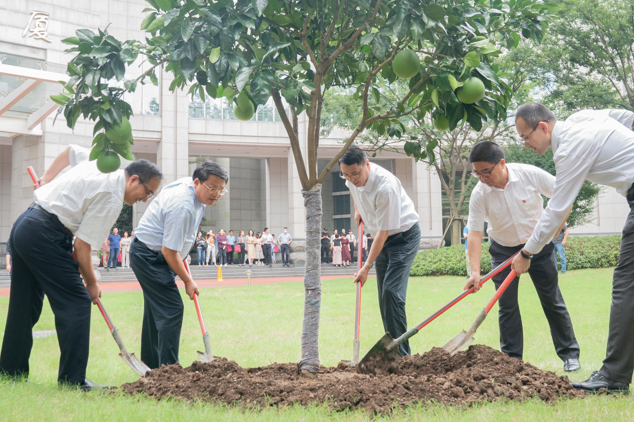 本网讯 7月20日至24日,2020年市农业农村委系统优秀年轻干部党性教育和能力提升专题培训班在我校举办。市农业农村委和市委党校领导对本期培训班高度重视,市农业农村委党组书记、主任张国坤,市农业农村委党组成员、副主任叶军平分别出席开班和结业仪式;培训结束之际,全体学员在市委党校校园内种下了一棵“青浦红柚”,取名“兴农”,市委党校常务副校长徐建刚参加了培土仪式。来自市农业农村委机关处室、直属单位、市农科院及区农业农村委系统的58名优秀年轻干部参加培训。