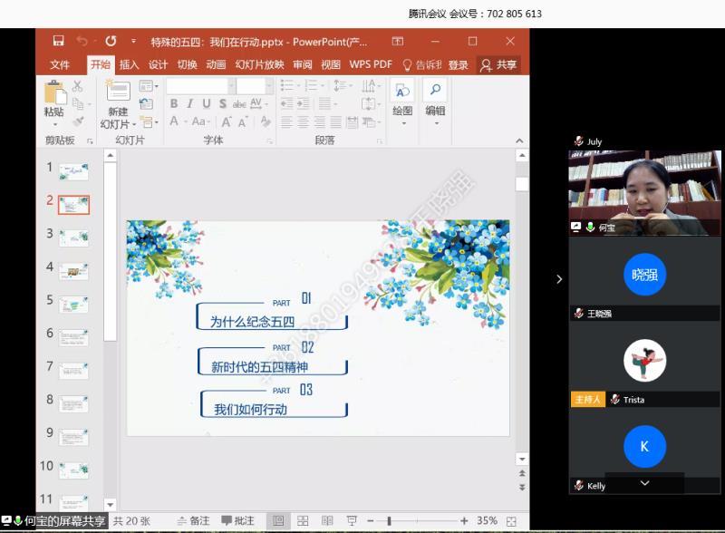 本网讯 4月21日中午,校团委开展了“青春战‘疫’,我们一起在行动”主题云团课。作为纪念五四运动101周年主题宣传教育实践系列活动之一,本次团课邀请了复旦大学附属华山医院北院急诊科护士、上海市第三批援鄂医疗队重症护理三组组长汤晶,以及校团委委员、马克思主义学院讲师何莹共同为大家作分享。校内外近130名团员青年通过腾讯会议线上直播的方式参与了团课。