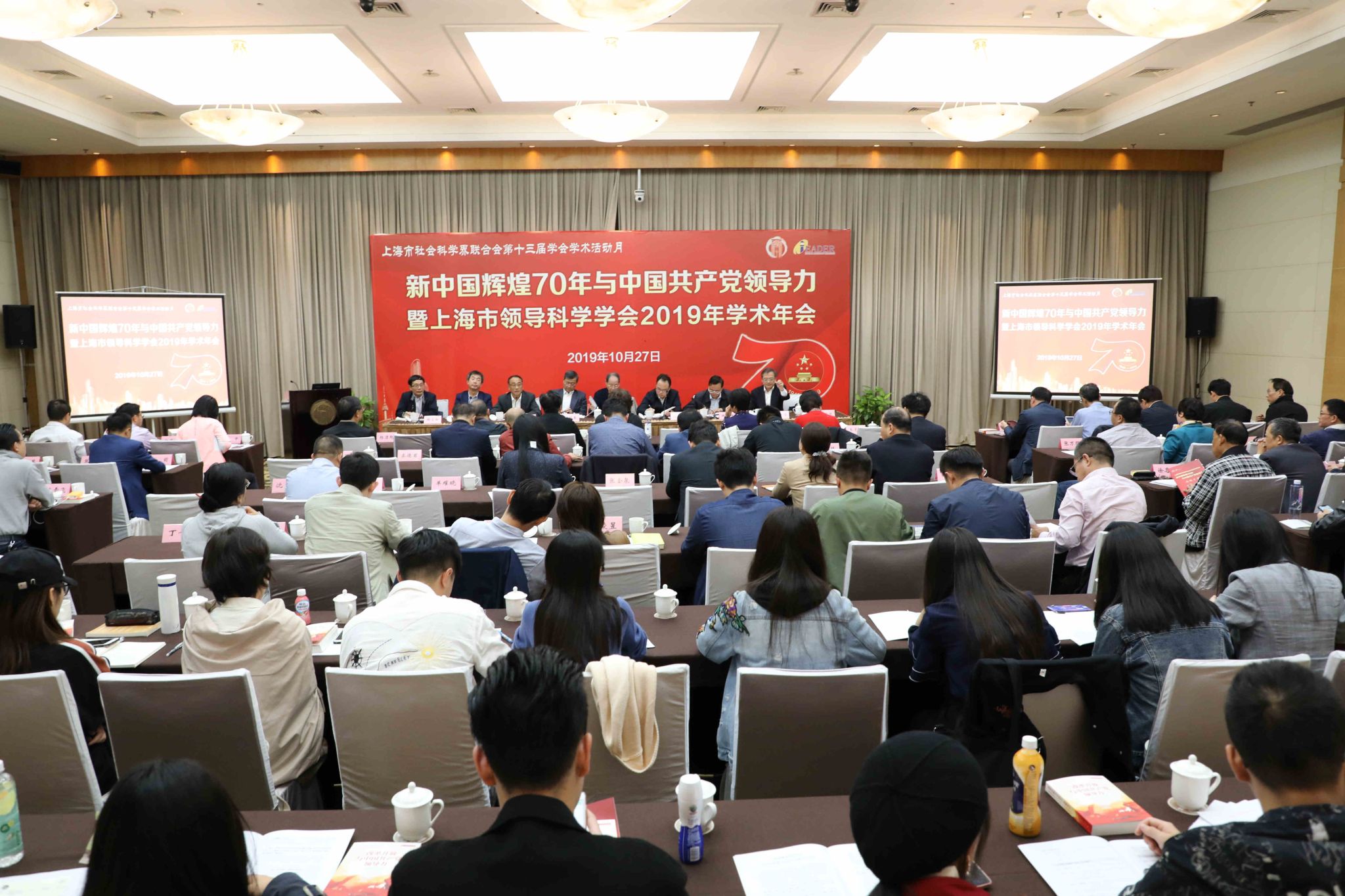 本网讯 10月27日,新中国辉煌70年与中国共产党领导力暨上海市领导科学学会2019年学术年会在我校召开。上海市社联党组成员、副巡视员陈麟辉出席会议并致辞,上海国际问题研究院学术委员会主席杨洁勉研究员受邀出席作主旨演讲,上海市领导科学学会会长、AG百家乐官网副校长郭庆松教授代表学会作年度工作总结并作主题报告,学会副会长、中共上海市奉贤区委常委、宣传部部长徐卫主持开幕式,学会副会长、中国浦东干部学院教研部主任赵世明教授主持研讨会,学会学术委员会副主任、解放日报党委副书记周智强作大会总结。