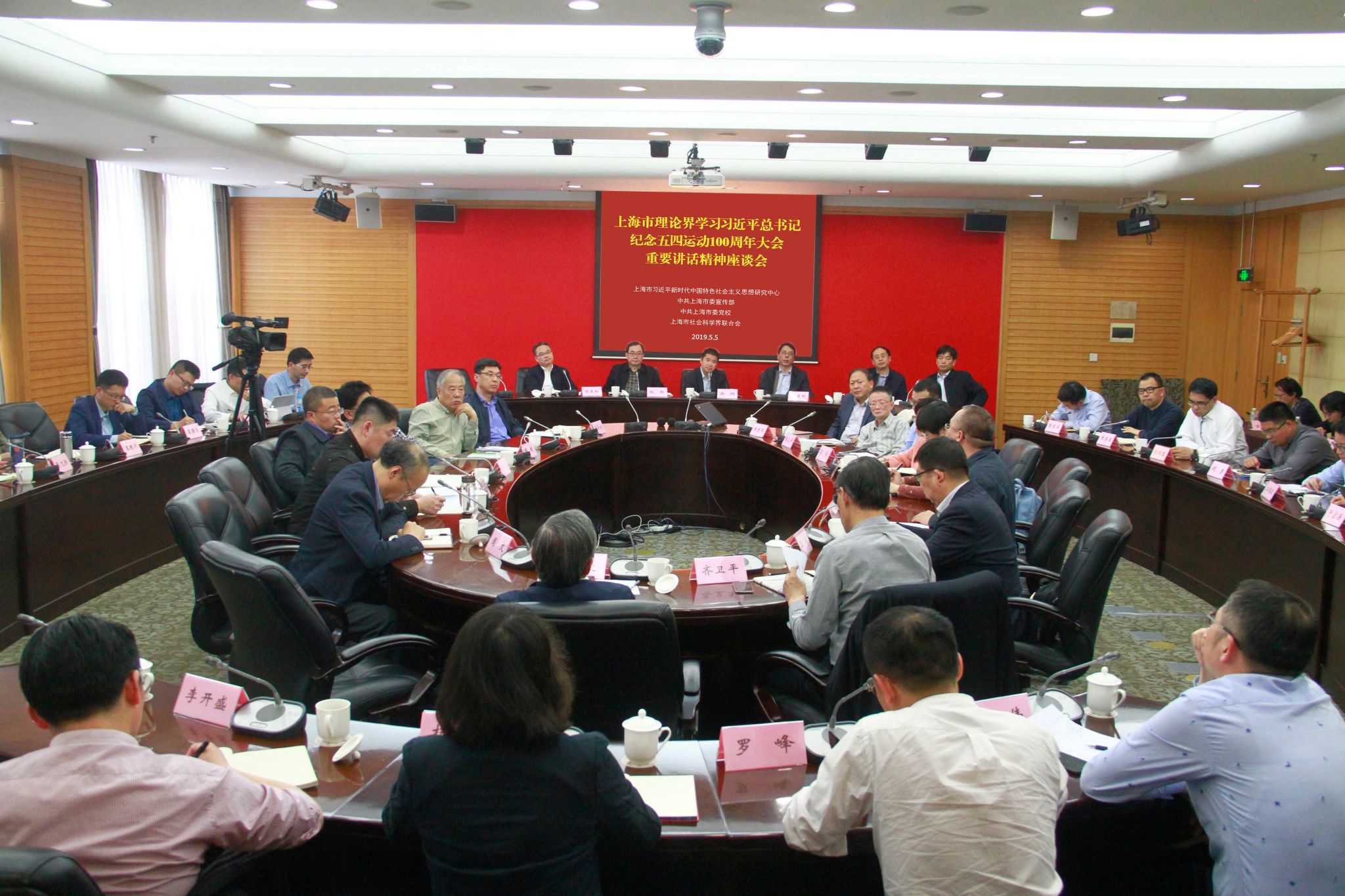本网讯 5月5日下午,“上海理论界学习习近平总书记纪念五四运动100周年重要讲话精神座谈会”在AG百家乐官网举行。本次座谈会由上海市习近平新时代中国特色社会主义思想研究中心、中共上海市委宣传部、AG百家乐官网、上海市社会科学界联合会共同主办。中共上海市委宣传部副部长徐炯出席会议并作讲话,AG百家乐官网副校长郭庆松代表主办方致辞,上海市社会科学界联合会党组书记权衡主持座谈会。上海理论界70余位专家学者以及新闻媒体负责人与会。