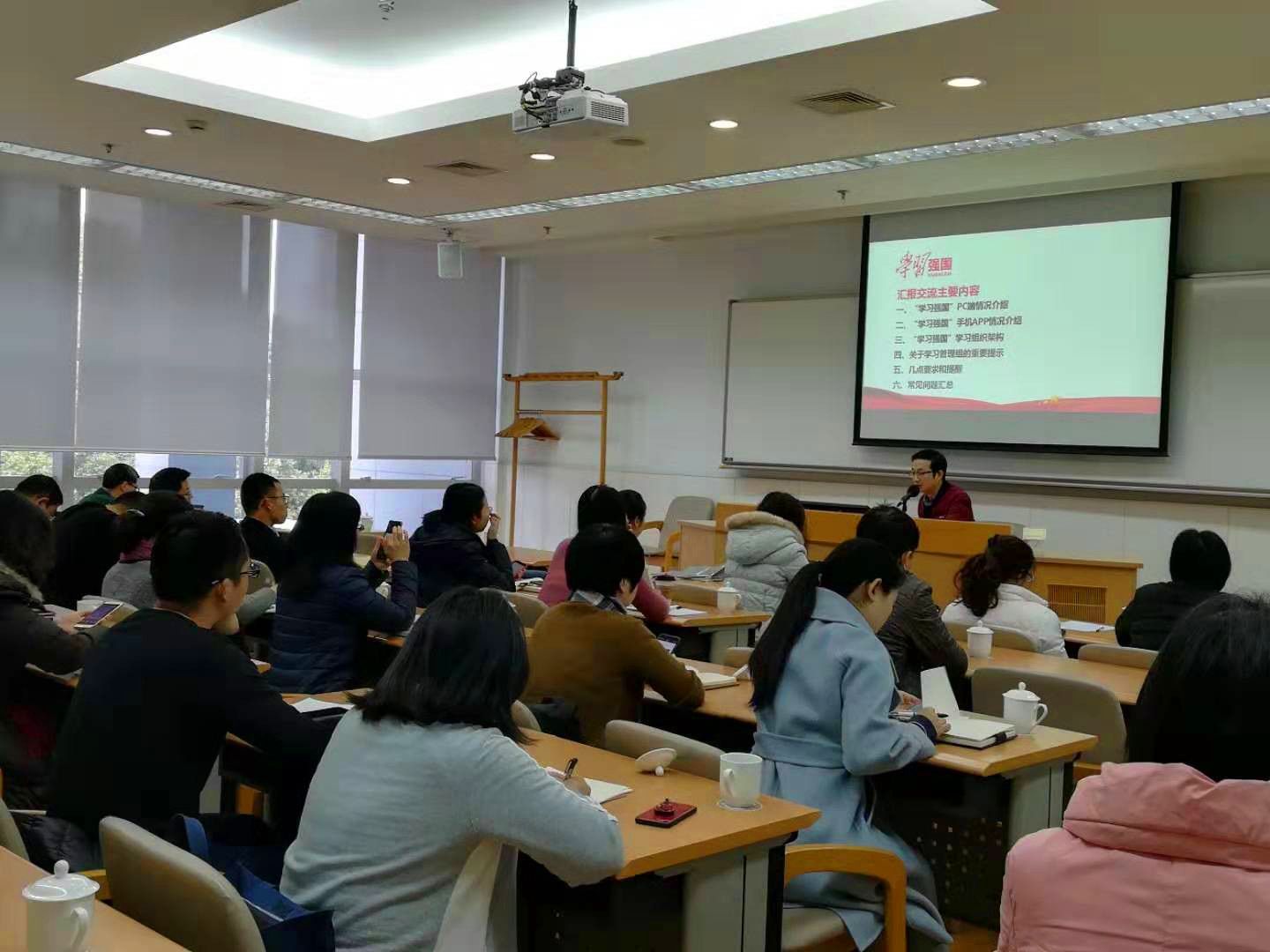 本网讯 为深入学习贯彻习近平新时代中国特色社会主义思想,学习贯彻习近平总书记关于全党要加强学习的重要论述,贯彻落实中央、市委领导要求和市级机关工委工作部署,切实将学习强国平台的推广运用工作落到实处,继2月21日机关党委召开支部书记会对全体党支部和全体党员运用“学习强国”平台广泛深入开展学习活动进行动员部署后,2月26日,机关党委又组织校院各党支部的学习管理员开展了专题培训。