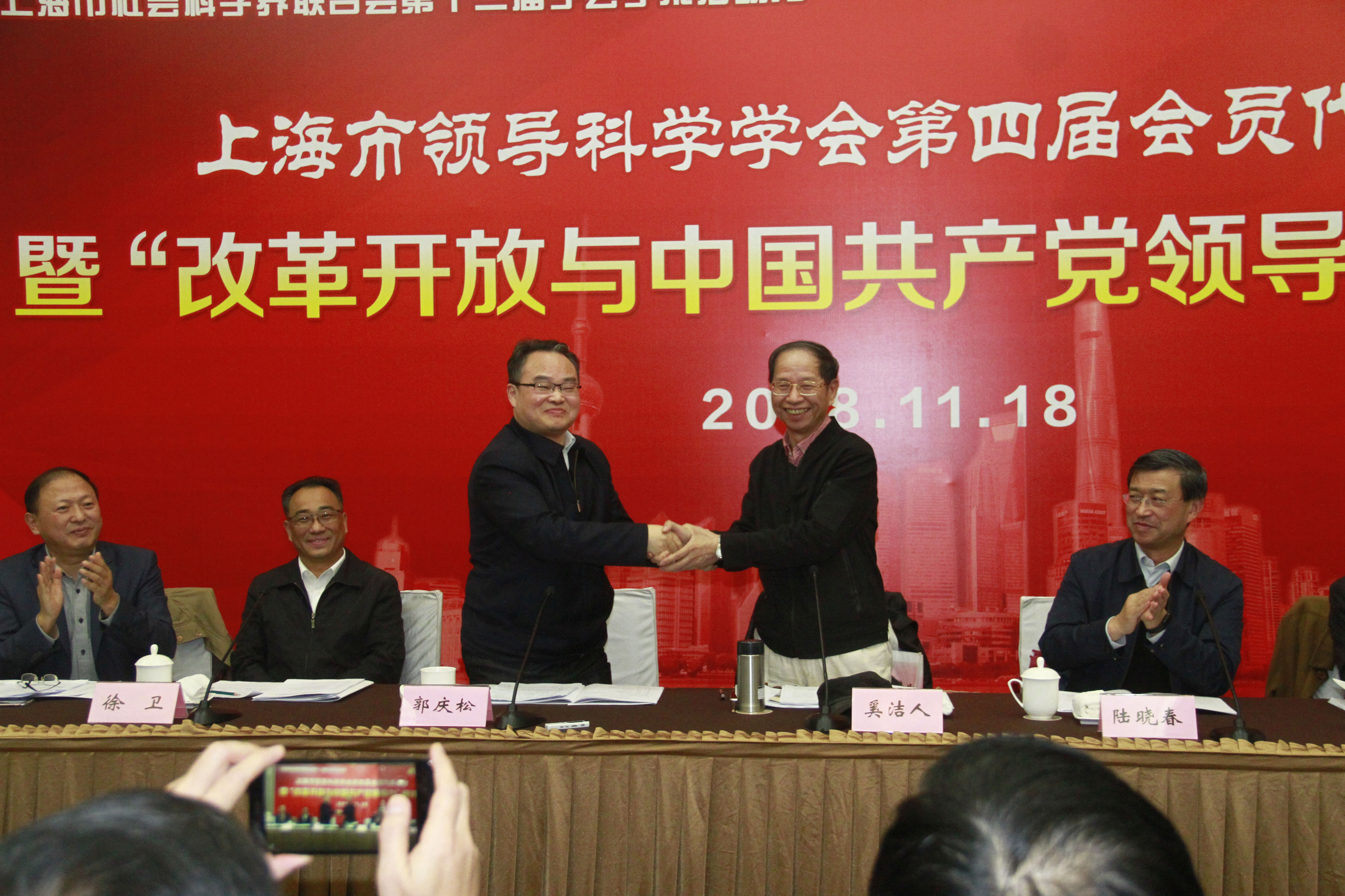 本网讯 11月18日,上海市领导科学学会第四届会员代表大会暨“改革开放与中国共产党领导力”研讨会在AG百家乐官网举行。代表大会审议并通过了工作报告、财务报告和学会章程修改,选举产生了新一届理事会,副校长郭庆松当选为新一届学会会长。