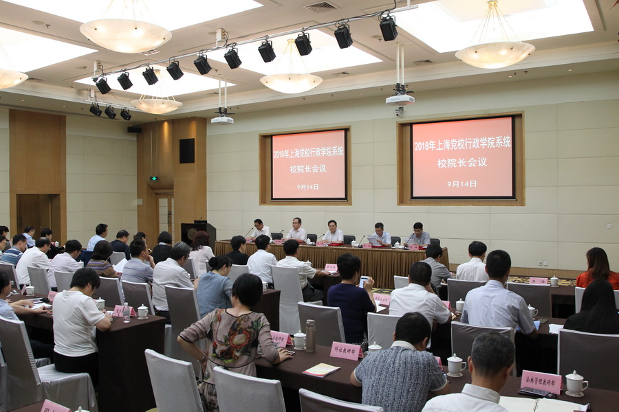 本网讯 9月14日下午,2018年上海党校行政学院系统校院长会议召开。会议总结了校院系统建设工作,通报了体制改革情况,交流了办学经验,对校院系统建设任务进行了部署,对新形势下做好校院系统工作提出了新要求。常务副校院长沈炜出席并讲话,副校院长李渤、郭庆松、曾峻、谢根华出席会议。郭庆松总结部署校院系统科研工作。曾峻总结部署校院系统教学工作。谢根华主持会议。