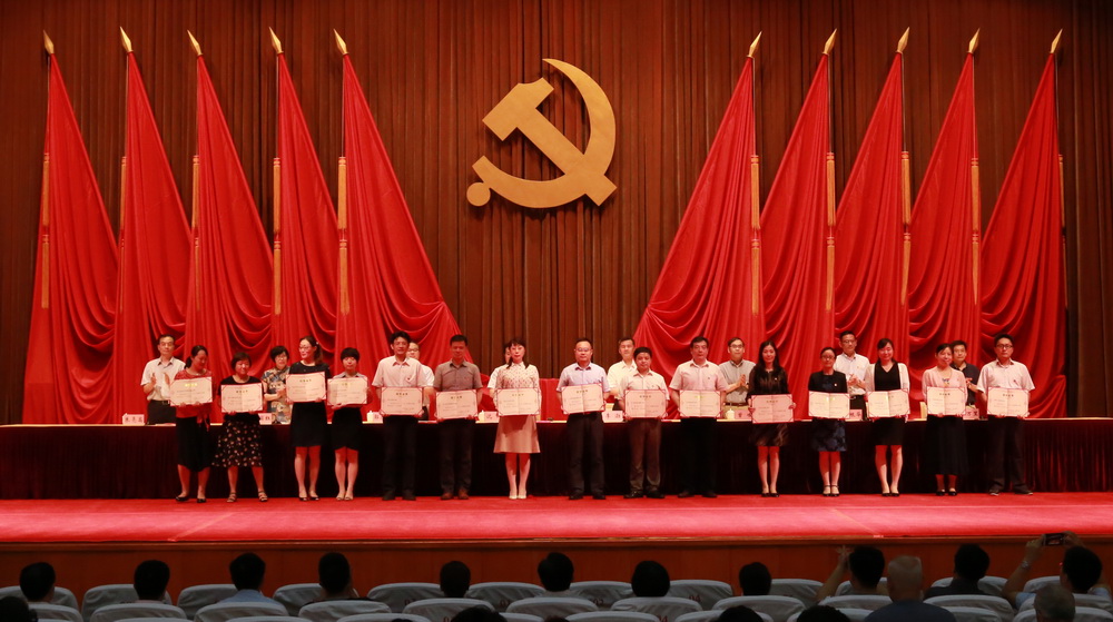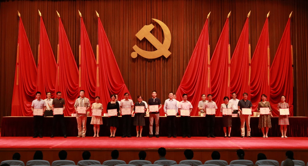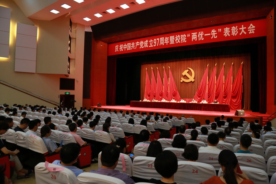本网讯 6月26日下午,在激昂响亮的国歌声中,AG百家乐官网、百家乐游戏庆祝中国共产党成立97周年暨校院“两优一先”表彰大会在校院大礼堂隆重举行。校院全体在职党员、研究生党员及部分离退休党员近600人参加大会。副校院长、校院机关党委书记李渤主持大会,副校院长郭庆松宣读校院“两优一先”表彰决定,校委领导为校院“两优一先”集体和个人颁奖。