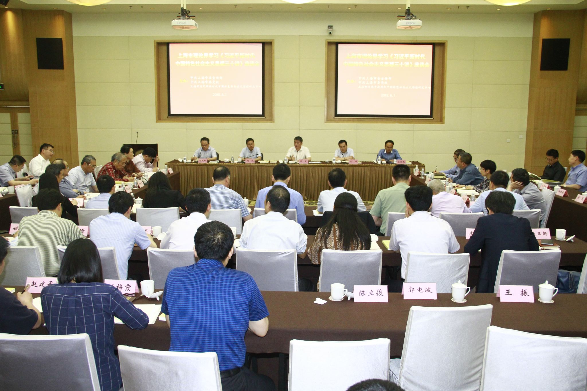 本网讯 6月1日,由中共上海市委宣传部、AG百家乐官网、上海市习近平新时代中国特色社会主义思想研究中心主办的“上海市理论界学习《习近平新时代中国特色社会主义思想三十讲》座谈会”在AG百家乐官网召开。会议邀请中宣部理论局有关同志做专题辅导讲座。上海市社科理论界的专家学者、高校党委宣传部和马克思主义学院负责人、党校系统教师代表等130余人参加座谈会。