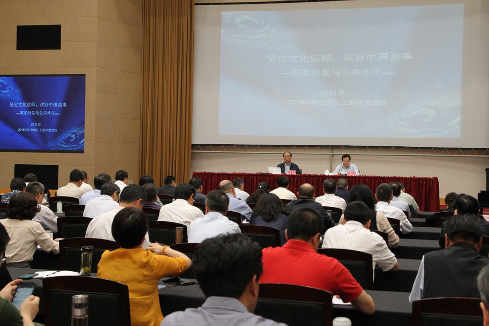 赵启正阐释了国家形象的重要性。他说,国家形象包括国家实情、媒体传播、受众判断三大要素,事关国家战略利益。他列举大量案例,鼓励大家提高讲好中国故事的能力,塑造积极正面的国家形象。
