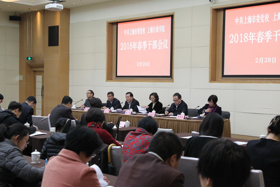 本网讯 2月28日,校院召开春季干部会议。常务副校院长沈炜通报2017年校委班子民主生活会情况,部署2018年工作。市纪委驻市委组织部纪检监察组组长朱鸣讲话。校委委员、各部门负责人及党支部书记、校工青妇组织负责人参加会议。