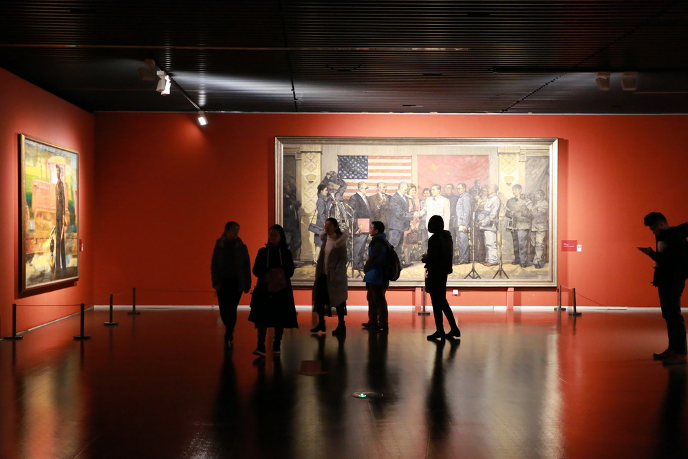 默念着赵丽宏的诗句:“打开历史的大门,听岁月涛声,寻播种者屐痕”,党员们依次走进石库门、窑洞门、天安门、复兴之门,感受着中国共产党诞生以来的四个重要历史阶段。从体现中共一大召开场景的油画作品,到表现南昌起义、抗日战争、上海解放、改革开放等一系列重大历史事件的作品,从吴湖帆、陆俨少、刘海粟、林风眠、程十发等老一辈艺术家的经典之作,到“80后”美术界新锐的优秀新作,在艺术家或细致或豪放但都包含深情的笔触中,党员们感受到一代代艺术家心系家国、放歌时代的赤子之心。党员们为“播火者坚定的脚步”而赞叹,激动于革命前辈的“理想之光”,体验着“历史在这里揭开光明的初页。光,在门内聚集,又从这里向世界辐射”的无上荣光,也为自身作为党员、作为党的诞生之地党校的一员而倍感自豪。