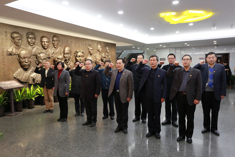在纪念馆序厅,面对鲜红的党旗,沈炜领誓,中心组全体成员举起右拳,严肃庄重地重温入党誓词:“我志愿加入中国共产党……”铿锵有力的宣誓声回荡在大厅,整个仪式庄严肃穆。沈炜强调,在中共一大会址这个共产党人的精神家园重温入党誓词,为的是回顾入党宣誓时的庄严承诺和坚定决心,教育每一位中心组成员学习老一辈共产党人对党的事业的忠诚,始终保持共产党员政治本色,始终牢记党校人的身份,在干部教育培训、课题研究、理论研讨等各项工作中,充分体现党校姓党,并在深入学习宣传贯彻习近平新时代中国特色社会主义思想,在上海全力打造建党历史资源高地、建党精神研究高地、建党故事传播高地的过程中,总结、提炼、宣传好党的诞生地精神内核,做出党校应有的贡献。