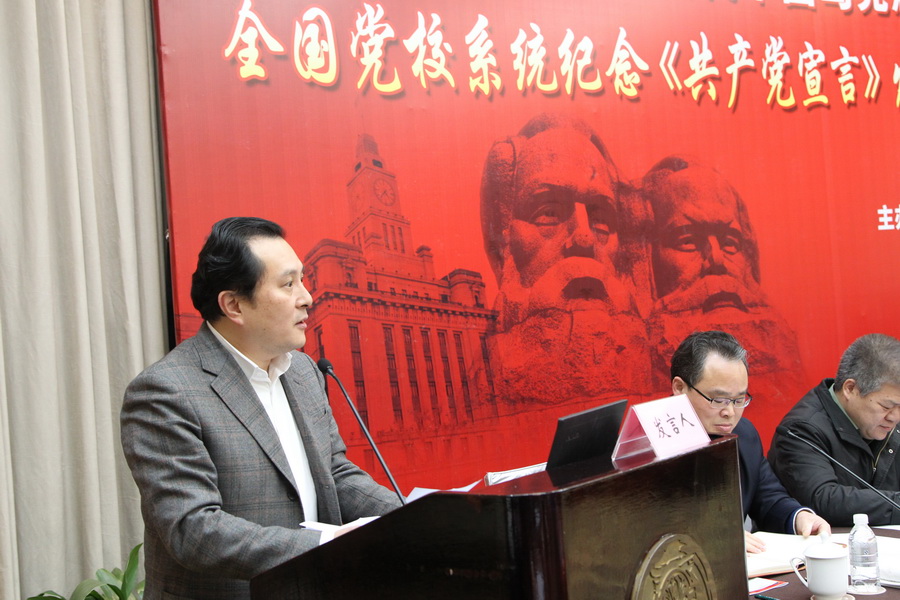 中共中央党校校委委员韩庆祥致辞并作主旨发言。他强调要从《共产党宣言》领悟五个“始终如一”:一是坚持人民立场始终如一。《共产党宣言》是为工人阶级、为劳动人民立言的,这一立场为当代中国马克思主义、当代中国共产党人始终如一加以坚守;二是坚持历史唯物主义的基本原理始终如一。《共产党宣言》的核心思想就是唯物史观,这也是中国共产党人在近百年奋斗中用以认识和把握中国社会的思想武器;三是坚持唯物辩证法始终如一。《共产党宣言》充满唯物辩证法的光辉,强调历史尺度和价值尺度的辩证统一,历史发展规律和主体能动性的辩证统一,物的发展和人的发展的辩证统一,为中国共产党坚持和发展马克思主义提供了方法论启示;四是坚持共产党人的初心和使命始终如一。这是《共产党宣言》的主旨和精神,也是中国共产党人始终坚持的,党的十九大的主题突出展示了这一点;五是坚持《共产党宣言》所阐述的基本原理始终如一。要坚持马克思主义基本原理,同时对基本原理的运用要随时随地以当时历史条件为转移。中国共产党人只有把马克思主义基本原理与当代中国具体实际更加紧密地结合起来,在坚持中发展,在发展中坚持,方能使马克思主义放射出更加灿烂的真理光芒。
