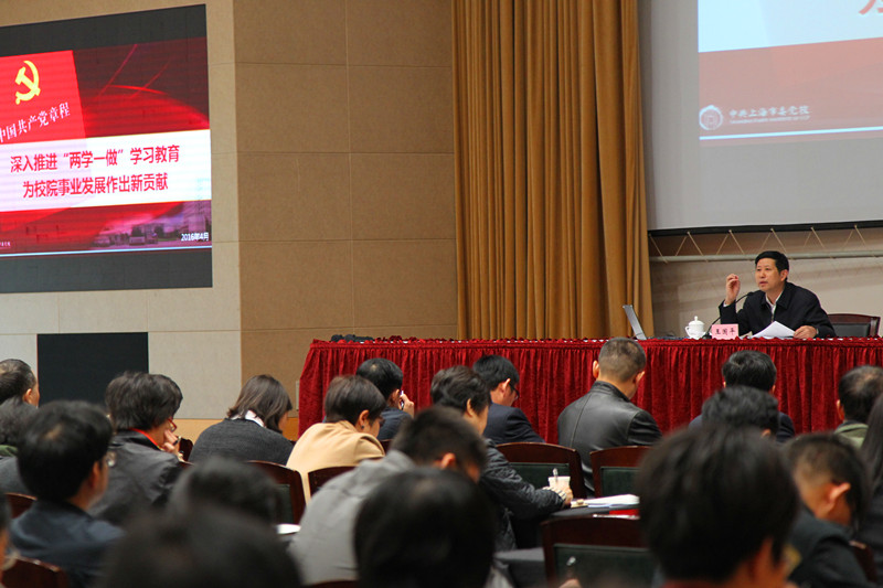 王国平以“深入推进‘两学一做’学习教育为校院事业发展作出新贡献”为主题向全体党员奉献了一堂精彩的党课。他紧密结合上海与校院发展实际,从“持续学习党章党规,做合格、优秀的共产党员”“在‘三位一体’的理论学习过程中,将学习总书记系列讲话作为重中之重”“联系校院事业发展的实际,不断推进‘两学一做’学习教育”三部分,对“两学一做”学什么,做什么进行了重点阐述。王国平强调,校院“两学一做”学习教育,基础在学,关键在做,要突出三个着力:着力将“两学一做”学习教育与深入贯彻全国和上海党校工作会议精神相结合,发挥培训领导干部主渠道、主阵地作用,为上海成为改革开放排头兵、创新发展先行者作出应有贡献;着力针对思想建设,解决突出问题,为党校姓党、党校人姓党作出新贡献;着力联系本单位、本部门、本岗位工作实际,查找短板,为全面提升校院办学水平作出更大贡献。
