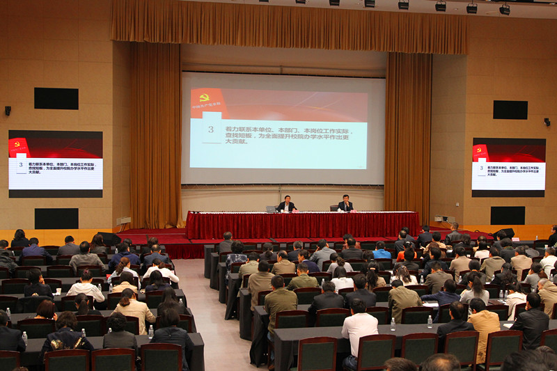 本网讯 4月19日上午9:00,校院在海华教学楼101报告厅召开“两学一做”学习教育全体党员大会,“两学一做”学习教育在总校分校全面启动。会上,常务副校院长王国平按照中央和市委要求,对校院“两学一做”学习教育进行了总体部署,并带头讲党课。大会由副校院长李渤主持。总校和分校全体党员约500人与会。市纪委驻市委组织部纪检组派员参加。