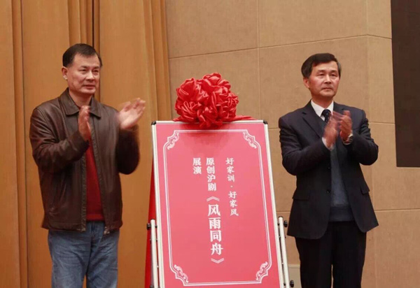 在简朴而隆重的揭幕仪式上,市委宣传部副部长、市文明办主任潘敏,市妇联主席徐枫共同为“好家训好家风”书法展揭幕。市文明办副主任宋慧、市档案局(馆)副局(馆)长程绣明共同为“海上家风”市委党校主题展揭幕。市委党校副校长李渤、市文广局副局长王小明共同为“好家训好家风”原创沪剧《风雨同舟》展演揭幕。奉贤区委常委、宣传部部长徐卫向市委党校教职员工代表和市民代表赠送《传家风、扬美德、作表率——家训家风书法雅集》。揭幕仪式结束后,党校教职工、党校学员与奉贤区居民、高校师生等一起参观了“海上家风”主题展、“好家训好家风”书法展,并观看了原创沪剧《风雨同舟》展演。