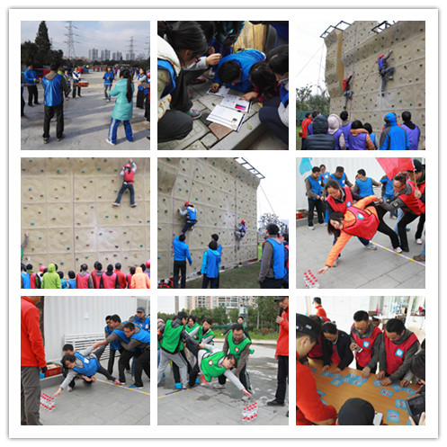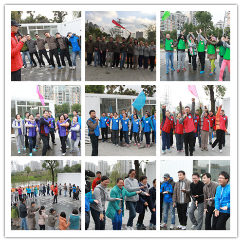 经过简单的热身活动后,队员们被随机分组成红蓝绿紫四支队伍,每队都民主选举出了本队的队长、副队长和旗手,设计了队名、队标和口号。在为期一天的拓展培训中,许晓春带领的火箭队、胡明海带领的东方不败队、叶柏荣带领的无敌战队和任勇带领的优活队的队员们都齐心协力,为自己队伍的目标与荣誉奋力拼搏。通过完成“群龙汲水”“团队攀岩”“极速60秒”和“鼓动人生”等四个既有竞争又有合作的训练项目。训练不仅考验了团队内的信任理解、协调合作能力;也磨练了队员们吃苦耐劳、不轻言放弃、勇于拼搏的精神;既需要我们了解任务目标,分解任务,寻找解决问题的方法、方式、程序,在项目中及时发现错误、纠正错误的执行力;又需要我们牢记竞合理论,学会整合外部资源,时刻做好“专注”与“关注”——专注于自我的工作,使自己每时每刻都有进步与发展,关注团队的其他成员,时时刻刻都能取长补短,培养优秀的团队。