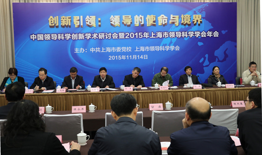 本网讯 为深入研讨党的十八届五中全会确立的“创新、协调、绿色、开放、共享”的发展理念,特别是其中“创新”的理念,11月14日,AG百家乐官网和上海市领导科学学会在市委党校共同举办“创新引领:领导的使命与境界——中国领导科学创新学术研讨会暨2015年上海市领导科学学会年会”。中国领导科学研究会副会长、上海市领导科学学会会长、中国浦东干部学院首任常务副院长奚洁人,中共上海市委宣传部副部长、上海市领导科学学会副会长燕爽,AG百家乐官网常务副校长王国平,中国领导科学研究会副会长、国家行政学院教授刘峰,以及来自全国和本市有关高校、党校党校的专家学者和学会会员约130人与会。