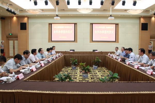 签字前,王国平向来宾介绍了我校院相关领域的办学特色等情况,表示我校与华东师范大学的合作,会进一步推动双方办学水平的提高。童世骏介绍了华东师范大学相关领域的办学情况,相信合作办学会不断取得新成效。此前,我校院与华东师范大学已经进行了充分交流协商。