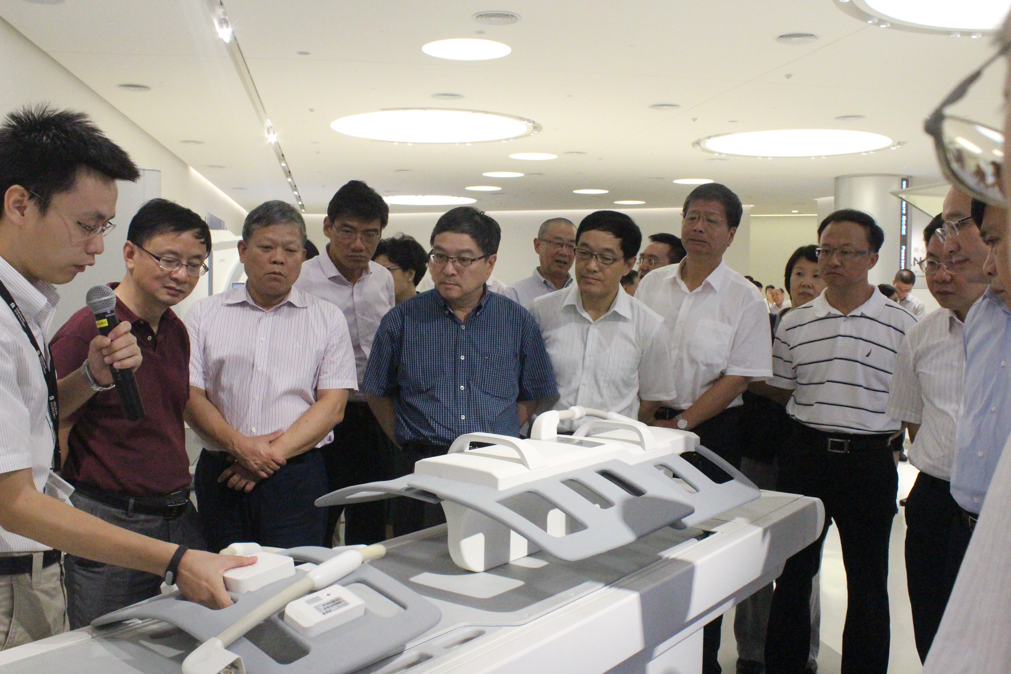 联影公司是高端医疗设备和医疗信息化解决方案提供商,习近平主席曾于去年5月24日到该公司考察调研。公司有关负责人向学员们介绍了具有国内自主知识产权的1.5T超导MR系统、16排CT系统、超高分辨率PET-CT系统、数字化DR机等中高端医学影像设备。这些产品整体性能已达到市场主流产品水平,标志着中国高端医疗设备国产化取得了长足进步。