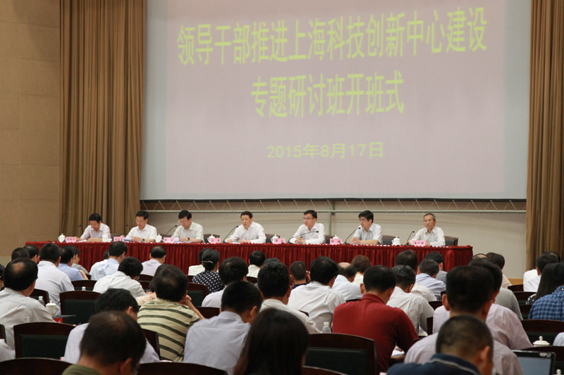 本网讯 8月17日下午,领导干部推进上海科技创新中心建设专题研讨班在我校海华教学楼正式开班。市委副书记应勇出席开班式并作开班动员。副市长周波作专题辅导报告。市委副秘书长陈寅、市科技党委书记吴信宝、市科委主任寿子琪、市委党校常务副校长王国平出席。市委组织部副部长、市委党校副校长陈皓主持开班式。相关部门分管领导,各区县政府分管领导、科委主任,市科技系统各单位所长、党委书记,部分高校、国有企业分管领导,部分科技园区、众创空间和创投、风投、小微企业负责人近200人参加。