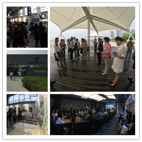 途中,叶敏华引导学员们思考这样一些问题:徐汇滨江地区曾分布着“铁、煤、砂、油”工厂,大量扬尘和污染排放使之成为上海中心城区重点污染源之一。在城区的重新规划和改造建设中,应该如何转变经济发展方式?如何保护性地开发好这片土地?一系列的问题让同学们带着思考开始了本次现场教学活动。