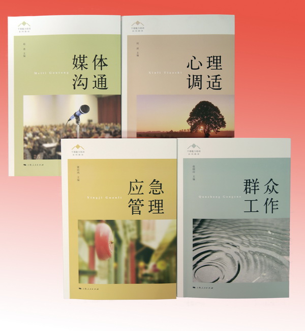 首批教材包括《群众工作》、《心理调适》、《媒体沟通》、《应急管理》4本,分别由本校具有相关教学经验和理论功底的学者、专家组成项目组负责编写。为保证编写质量,校院成立了干部能力培训系列教材编委会,常务副校院长王国平任编委会主任,副校院长曾峻任编委会副主任;并广泛听取了本市领导干部、专家学者、一线部门负责同志的意见建议。