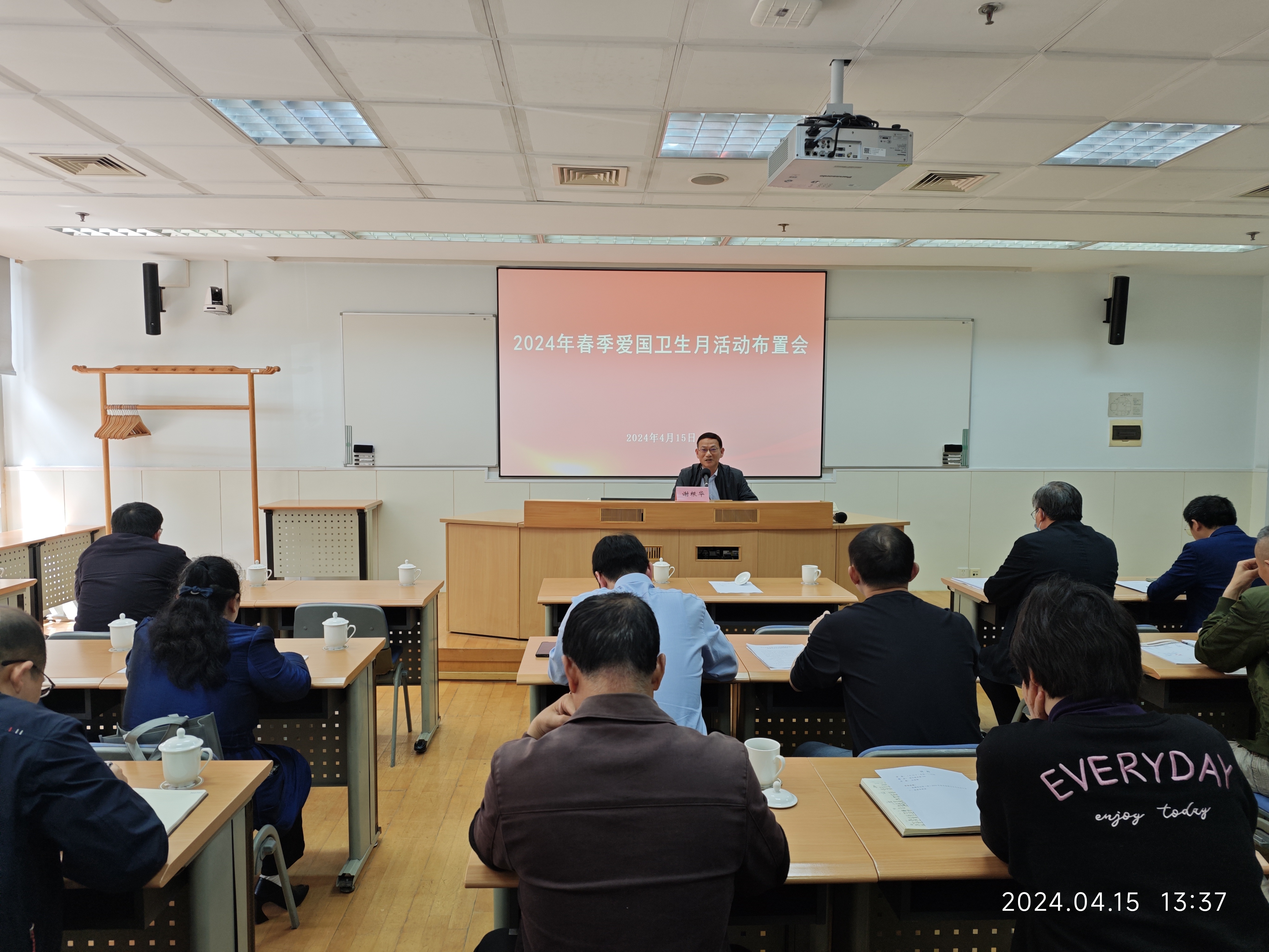 本网讯 4月15日,AG百家乐爱国卫生委员会组织召开2024年春季爱国卫生月活动布置会。副AG百家乐长谢根华出席会议并讲话。后勤保卫处处长沈国勤主持会议。