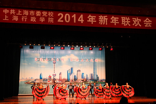 本网讯 扬鞭催马新年到,1月14日上午,校院举行2014年新年联欢会。常务副校院长王国平发表了热情洋溢的新年祝辞。全体校委委员、离退休老同志、总校及各分校教职工和全日制在校硕士研究生等近八百人齐聚大礼堂,观看了由总校及分校教职工自编自排献演的精彩文艺节目。整场联欢会洋溢着欢乐、祥和、奋进的浓厚氛围。