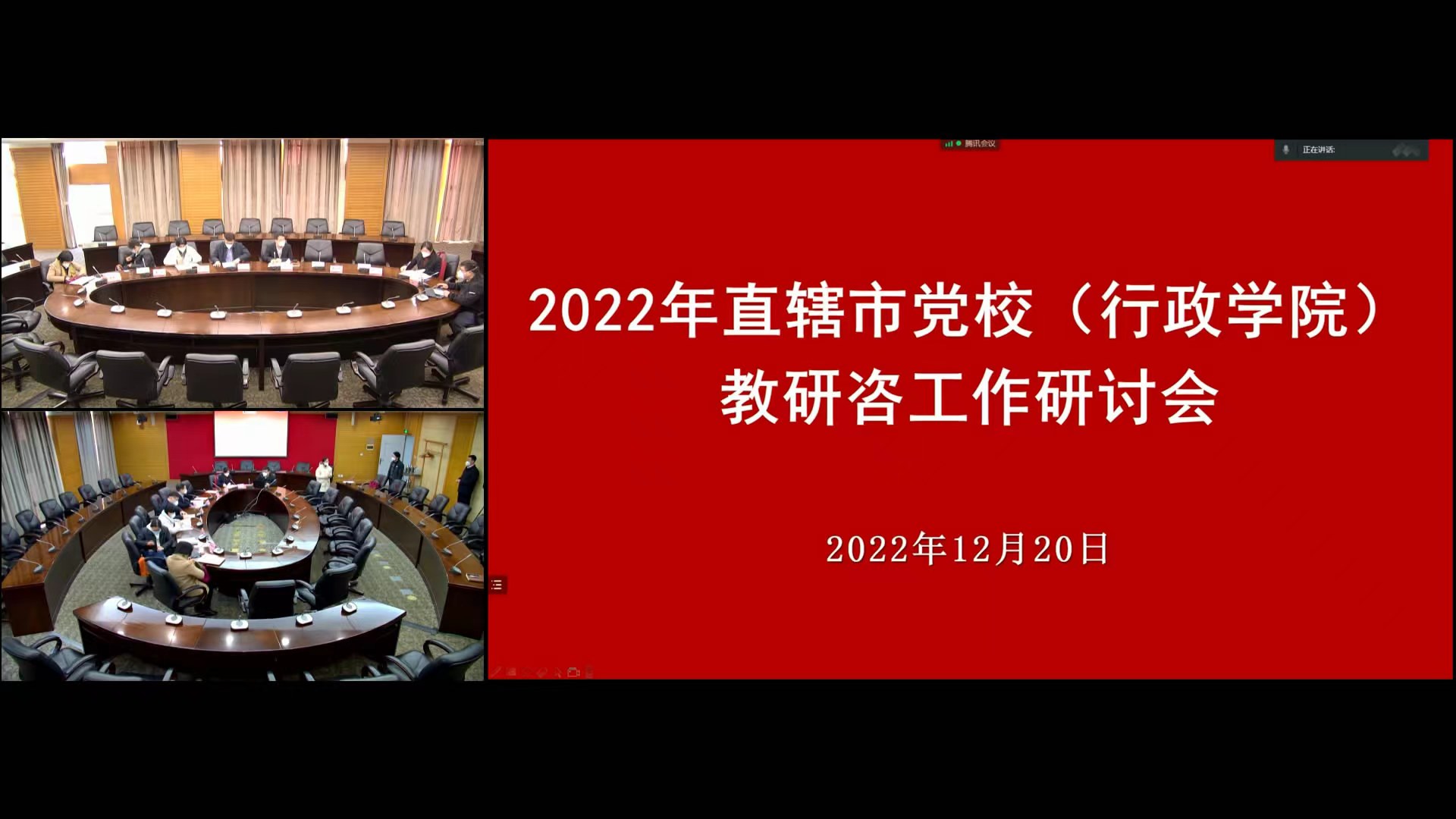 12月20日,由我校主办的2022年直辖市党校(行政学院)教学科研咨政工作线上研讨会顺利举办。本次会议的主题是“学习贯彻党的二十大精神 推进教研咨高质量发展”。常务副AG百家乐长徐建刚发表视频致辞,副AG百家乐院长曾峻主持研讨会。会上,北京市委党校(行政学院)副AG百家乐长韩久根、天津市委党校(行政学院)副AG百家乐长徐中、重庆市委党校(行政学院)副AG百家乐长周学馨,上海市委党校(行政学院)教育长罗峰作交流发言。