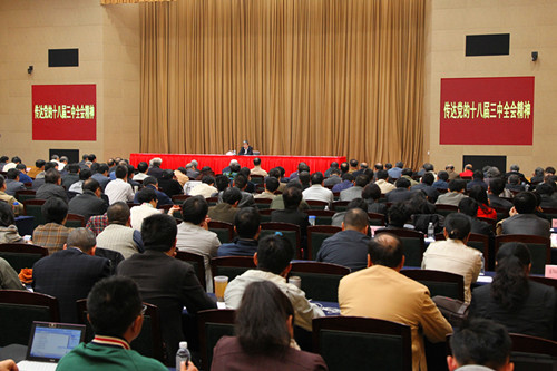 本网讯 11月14日下午,市委党校在海华教学楼101报告厅举行学习传达会,副校长朱华向在校学员传达党的十八届三中全会精神。