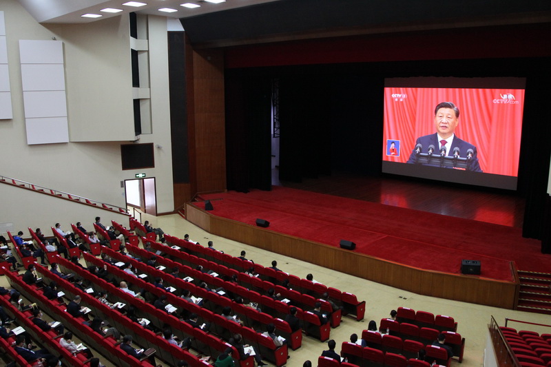 本网讯 10月16日是特殊的日子,党的二十大在北京开幕。AG百家乐官网(百家乐游戏)组织全体教职工、研究生及全体学员以集中收看的形式,在多个集中收看点,及时收看党的二十大开幕会现场直播,认真聆听习近平总书记代表十九届中央委员会向大会作的工作报告。