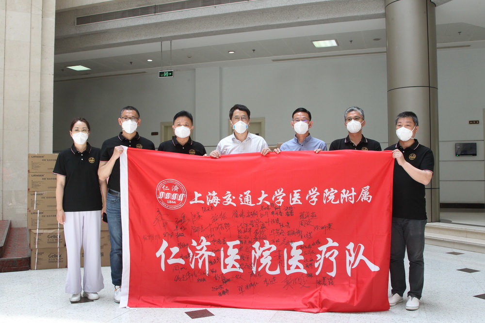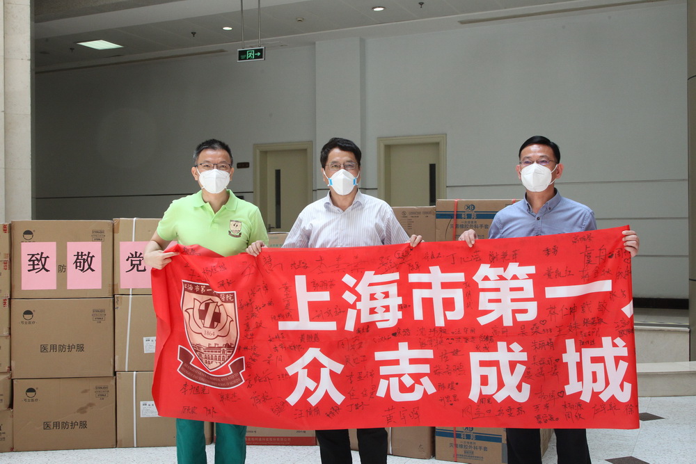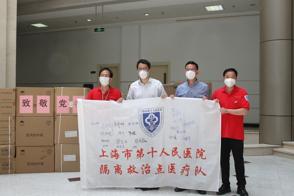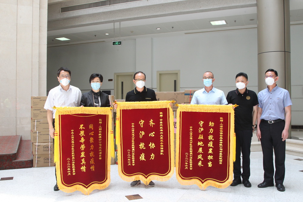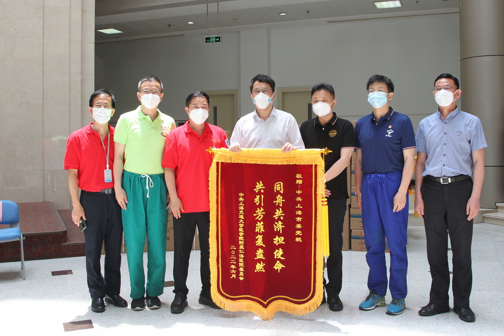 会后,上海方舱医院医疗队向市委党校赠送锦旗、全体医疗队队员签名的队旗和防疫物资,并分别向海兴大厦、上勤高级楼宇、上海宗保保安等服务团队赠送了锦旗。