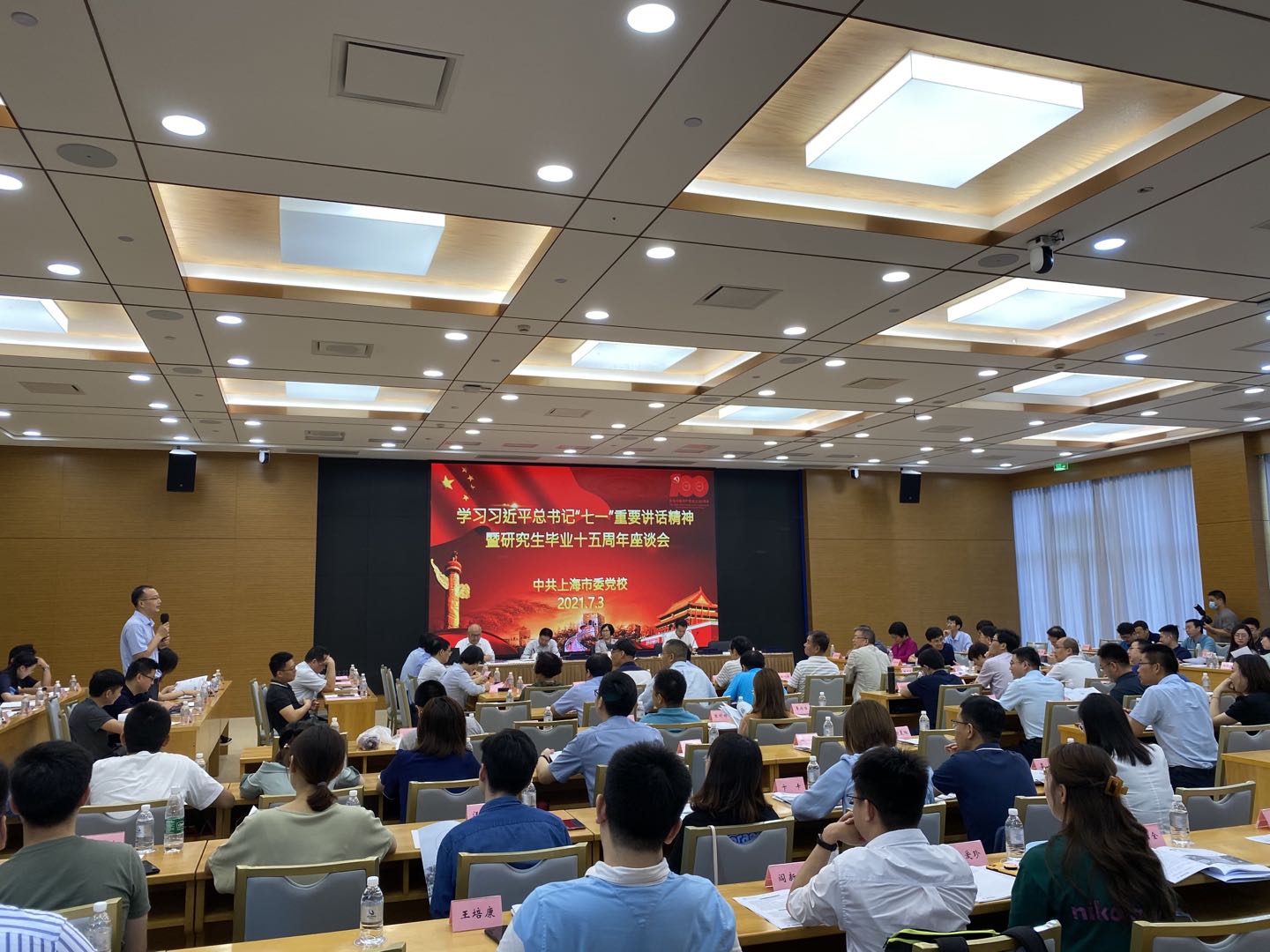 本网讯 7月3日,学习习近平总书记“七一”重要讲话精神暨研究生毕业十五周年座谈会在海中楼101教室召开。副AG百家乐长梅丽红、教育长罗峰出席并讲话,党群工作部主任赵建平、研究生部主任袁峰、各学位点负责人、导师代表和80余位党校历届毕业研究生参加。